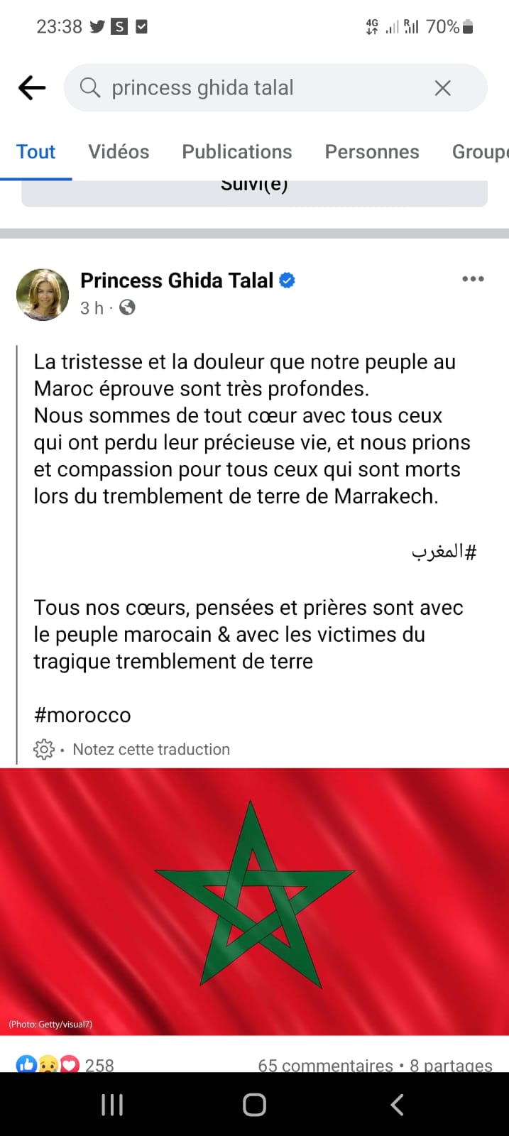 الأميرة غيداء طلال.. الحزن والألم الذي يعيشه أهلنا في المغرب عميق جدا