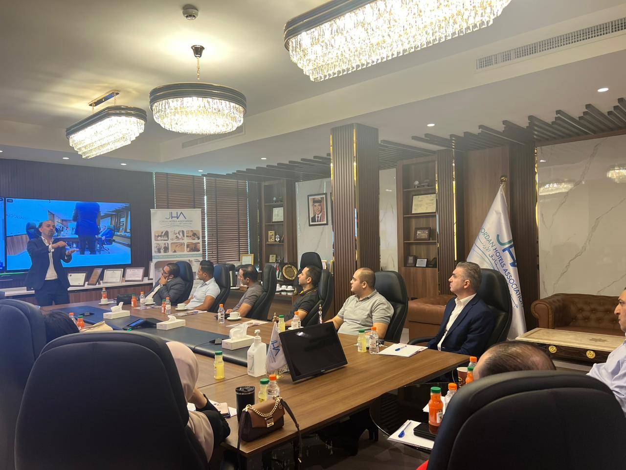 اقامت جمعية الفنادق الاردنية ممثلة برئيس مجلس الادارة سعادة العين عيد الحكيم الهندي والمدير العام مصطفي كعوش بعمل ورشة عمل تتعلق بنظام ادارة قاعدة البيانات الخاصة وربطها بوسائل التواصل الاجتماعي المختلفة عن الطريق الخبير في هدا المجال السيد هاني الدباس لمجموعة من الفنادق في العاصمة عمان