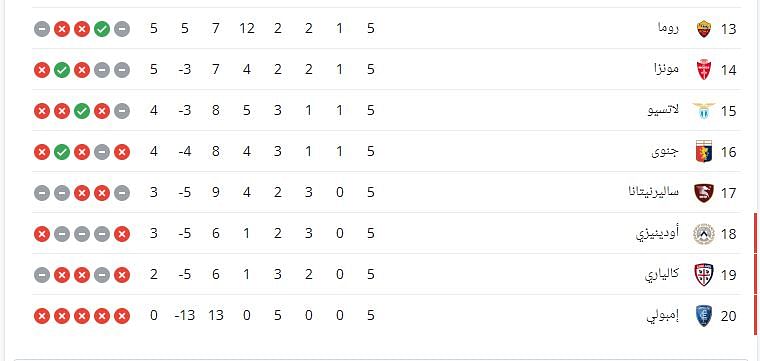 وعبرت جماهير يوفنتوس علنًا عن إحباطها من أداء الفريق بعد أن انتهى الشوط الأول الممل دون أهداف، حيث كانت تسعى لتعويض هزيمة منكرة 4-2 يوم السبت أمام ساسولو. وأكمل ليتشي المباراة بعشرة لاعبين في الدقيقة الثالثة من الوقت المحتسب بدل الضائع بعد حصول محمد كابا على البطاقة الصفراء الثانية بسبب تعمد السقوط. ويحتل يوفنتوس المركز الثاني في الدوري الإيطالي برصيد 13 نقطة متأخرًا بنقطتين عن إنتر ميلان الذي يستضيف ساسولو الأربعاء. ويحتل ليتشي المركز الرابع. وفيما يلي جدول ترتيب الدوري الإيطالي: