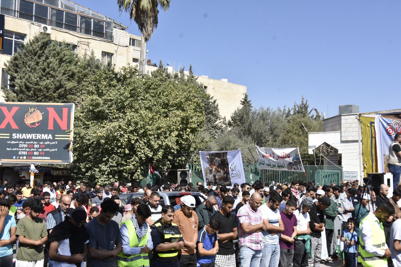وردد المشاركون هتافات تندد بالعدوان الهمجي على المدنيين العزل، داعمة لصمود الشعب الفلسطيني والوقوف خلف قيادتنا موحدين بمواقفنا الثابتة وبوصلتها فلسطين وتاجها القدس.