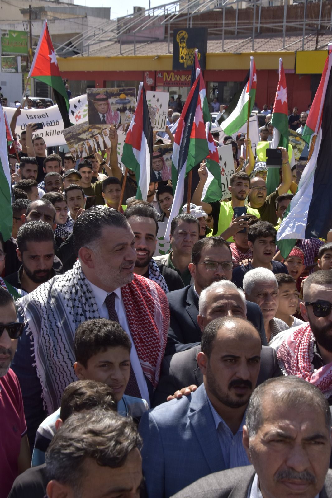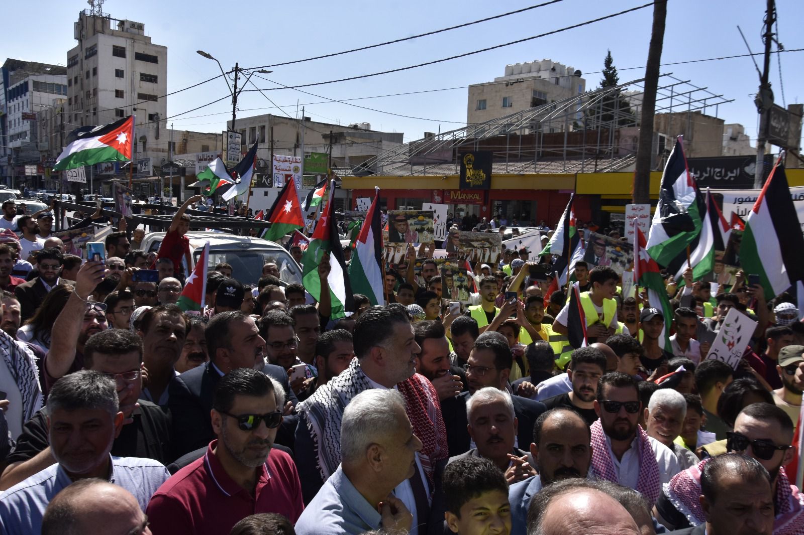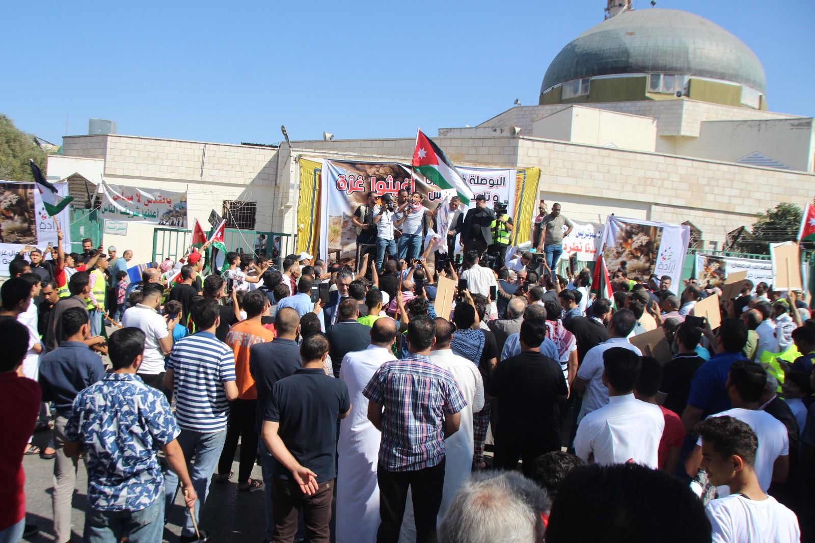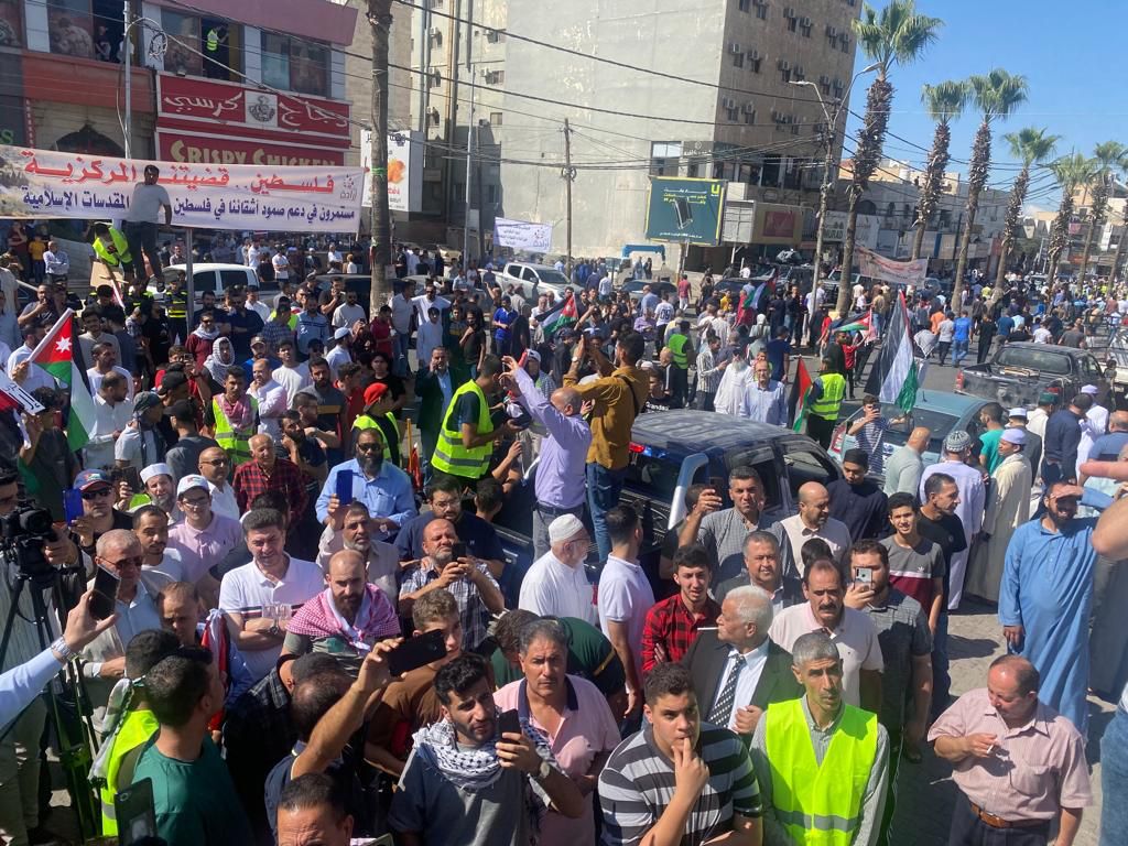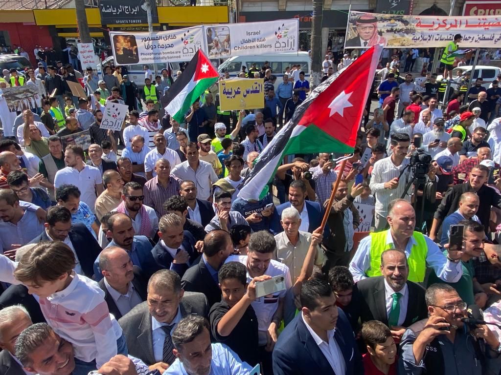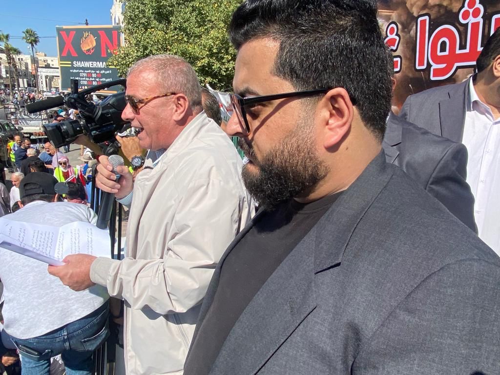 وخاطب البطاينة الحشود "اليوم يومكم لتصل أصوات حناجركم الى أهلنا الصامدين المرابطين الأبطال في غزة العزة والبطولة وفي كل شبر من تراب فلسطين الطهور، أن لهم في الأردن ظهيراً وسنداً يتوحد معهم في الدم وفي المصير".
