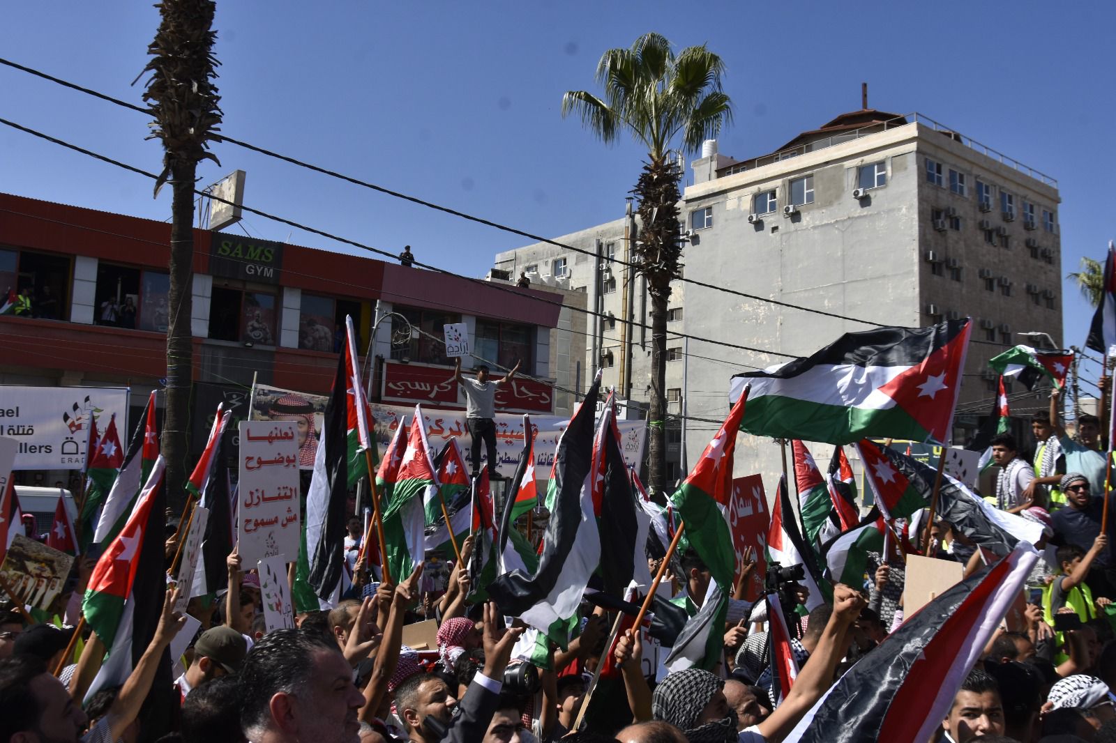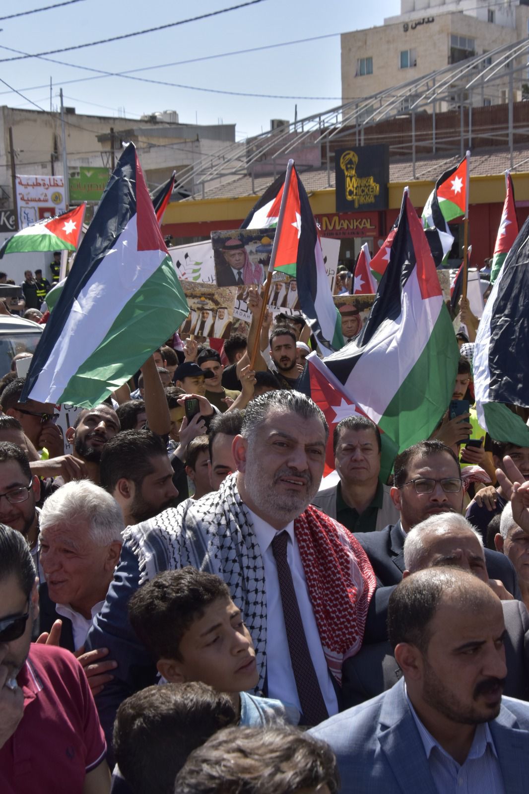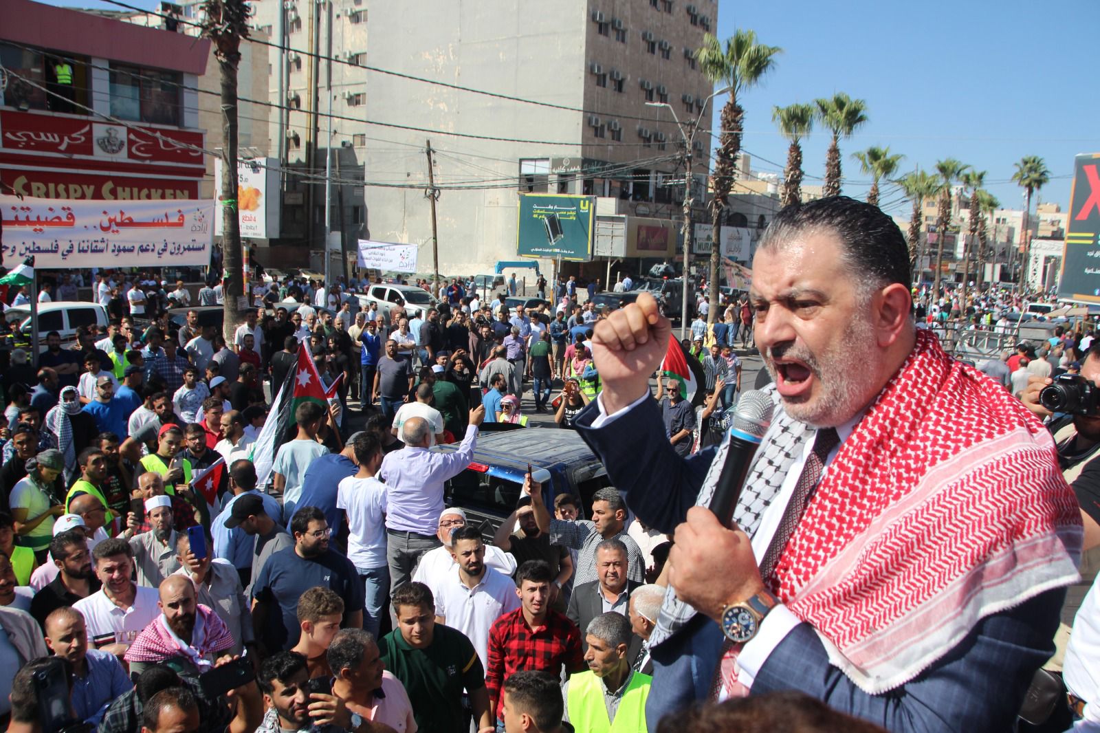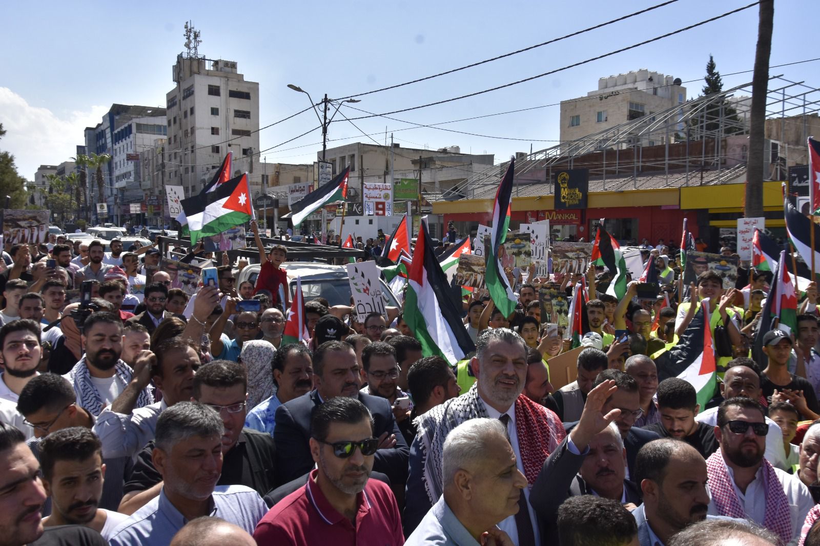 وخاطب البطاينة الحشود "اليوم يومكم لتصل أصوات حناجركم الى أهلنا الصامدين المرابطين الأبطال في غزة العزة والبطولة وفي كل شبر من تراب فلسطين الطهور، أن لهم في الأردن ظهيراً وسنداً يتوحد معهم في الدم وفي المصير".