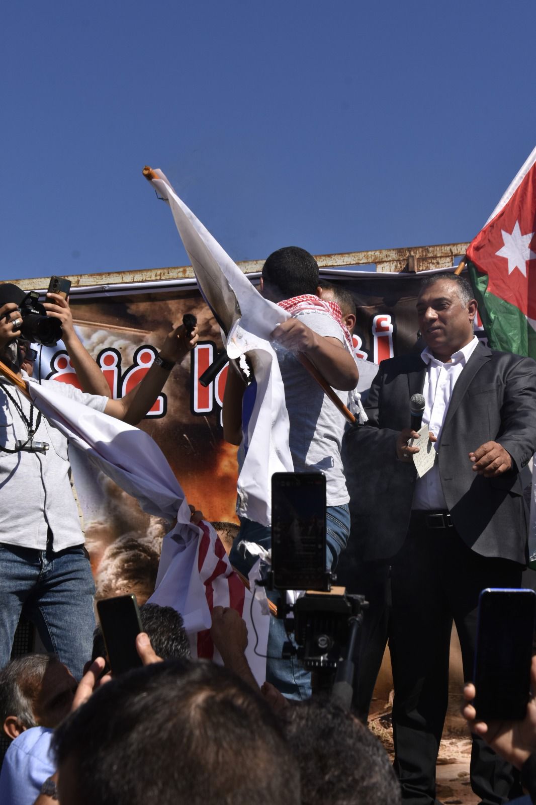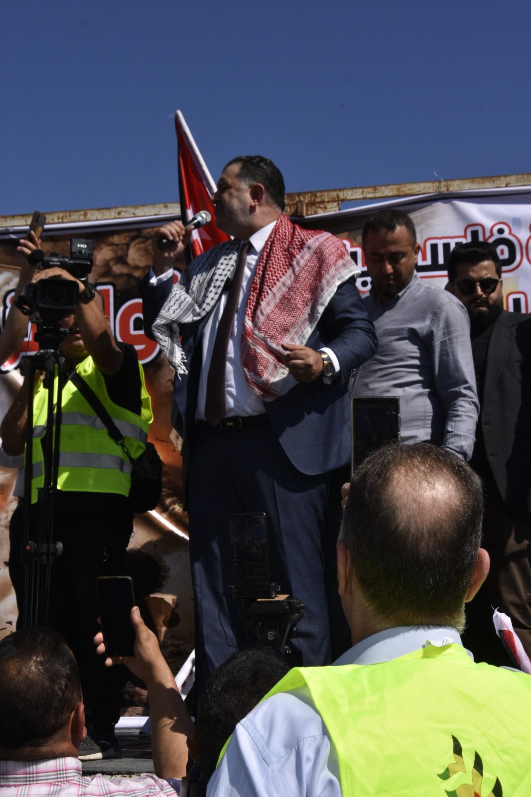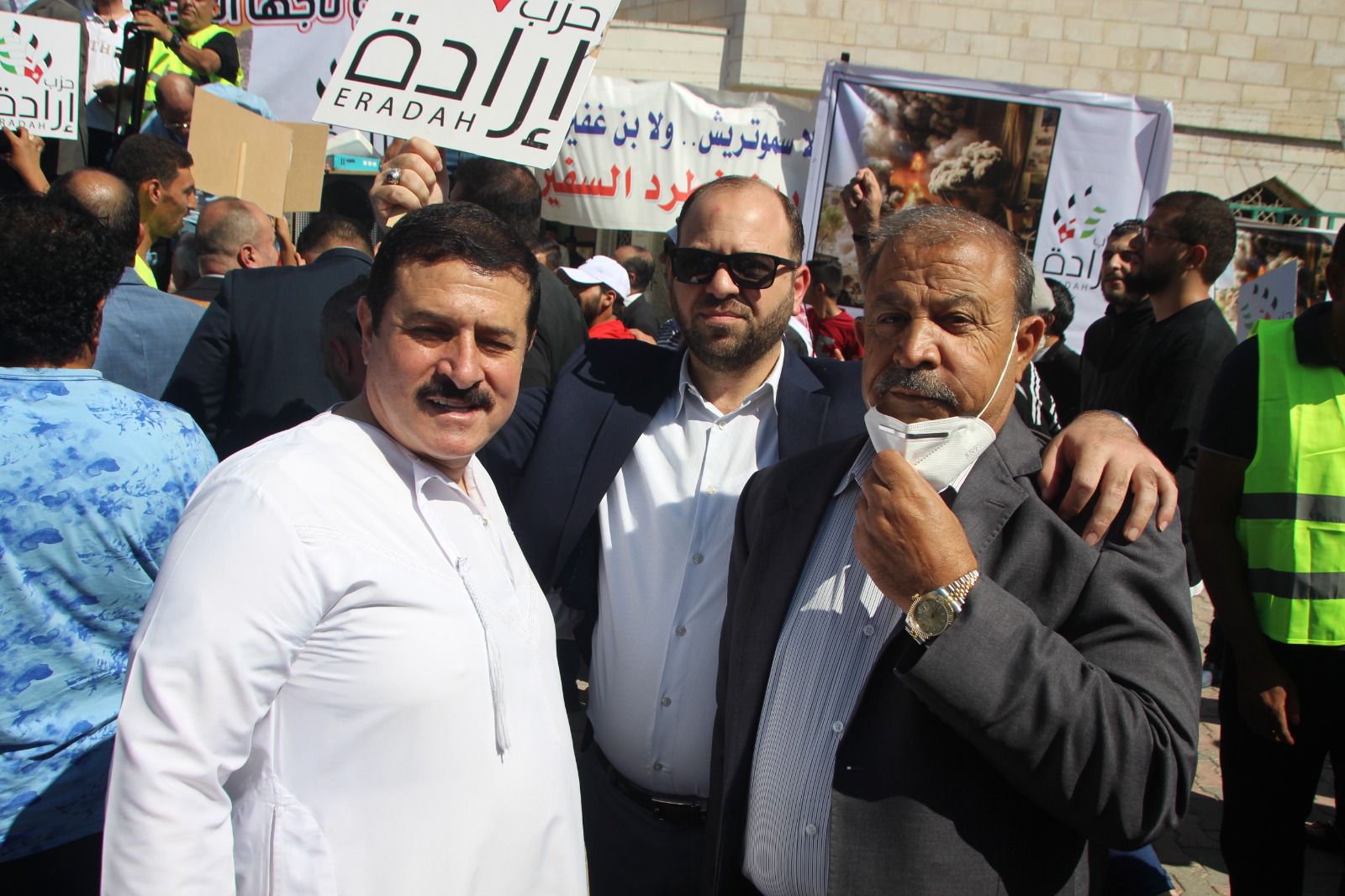 وقدم عضو المجلس المركزي في حزب إرادة الأمين العام لحزب إرادة نضال البطاينة، حيث قال البطاينة أن شعبنا الاردني الواحد في ارض الرباط ارض العزة والكرامة يعلنونها مدوية لا تنازل ولا تراجع عن الحقوق ولا تهاون مع عدو غاشم محتل، فكلنا فلسطينيون اليوم لأننا كلنا في الأردن أردنيون عندما يتعلق الشأن في الأردن وفلسطينيون عندما يتعلق الشأن بفلسطين واليوم البوصلة فلسطين.
