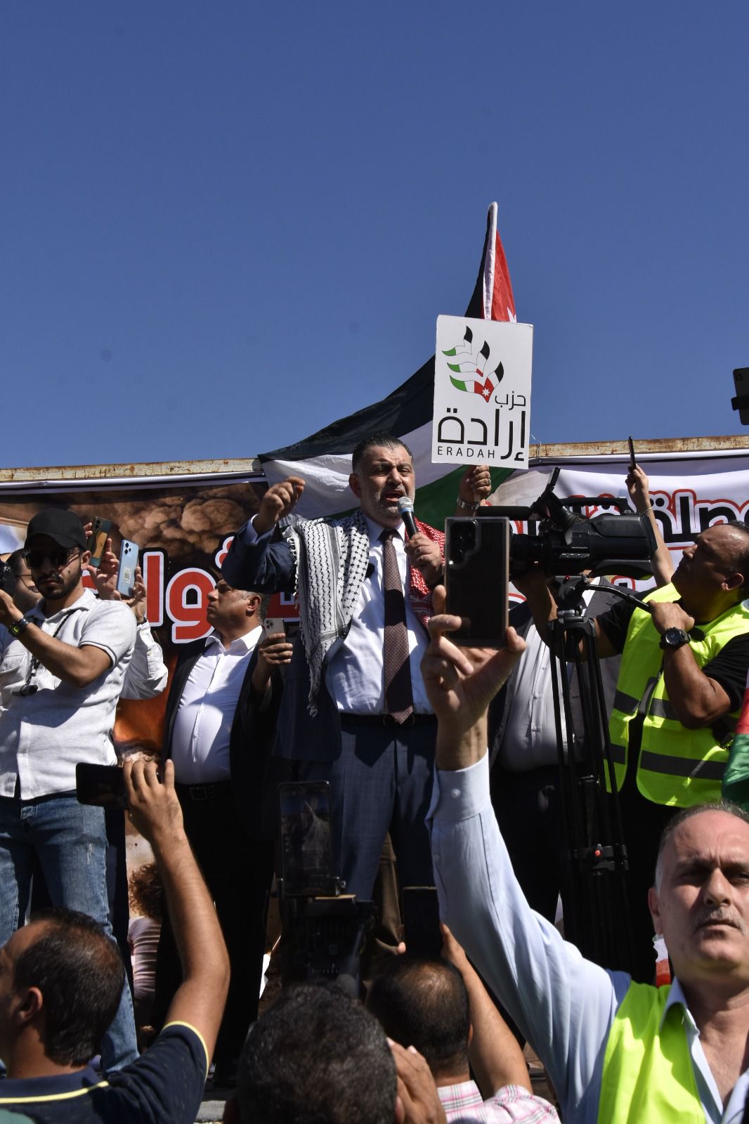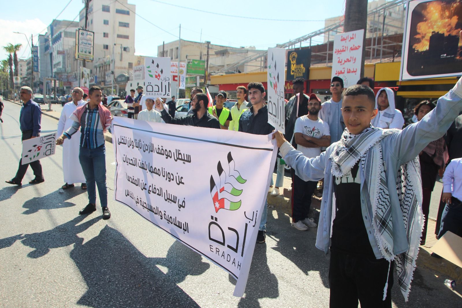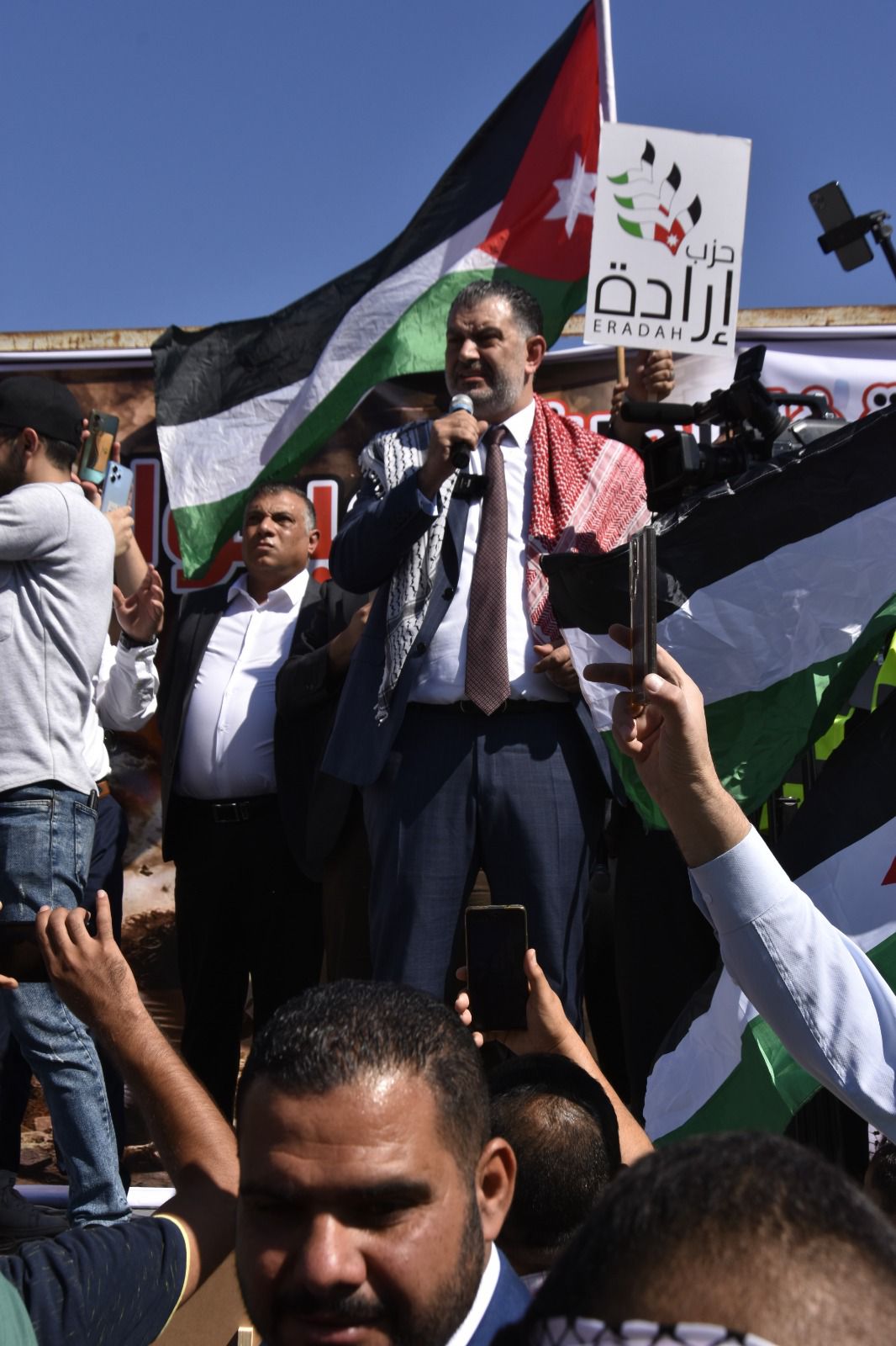 نظم حزب إرادة في محافظة إربد ، وقفة تضامنية مع الشعب الفلسطيني البطل، بمشاركة حشود من مختلف أنحاء المملكة، منددين بالعدوان الممنهج ضد أبناء الشعب الفلسطيني وداعمين للموقف الأردن الرسمي ملتفين حول القيادة الهاشمية.