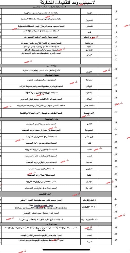 قائمة باسماء الحضور بقمة القاهرة للسلام .