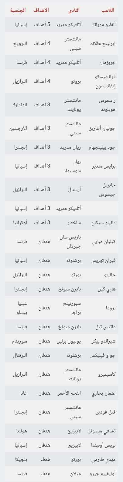 ترتيب هدافي دوري أبطال أوروبا 2023/2024