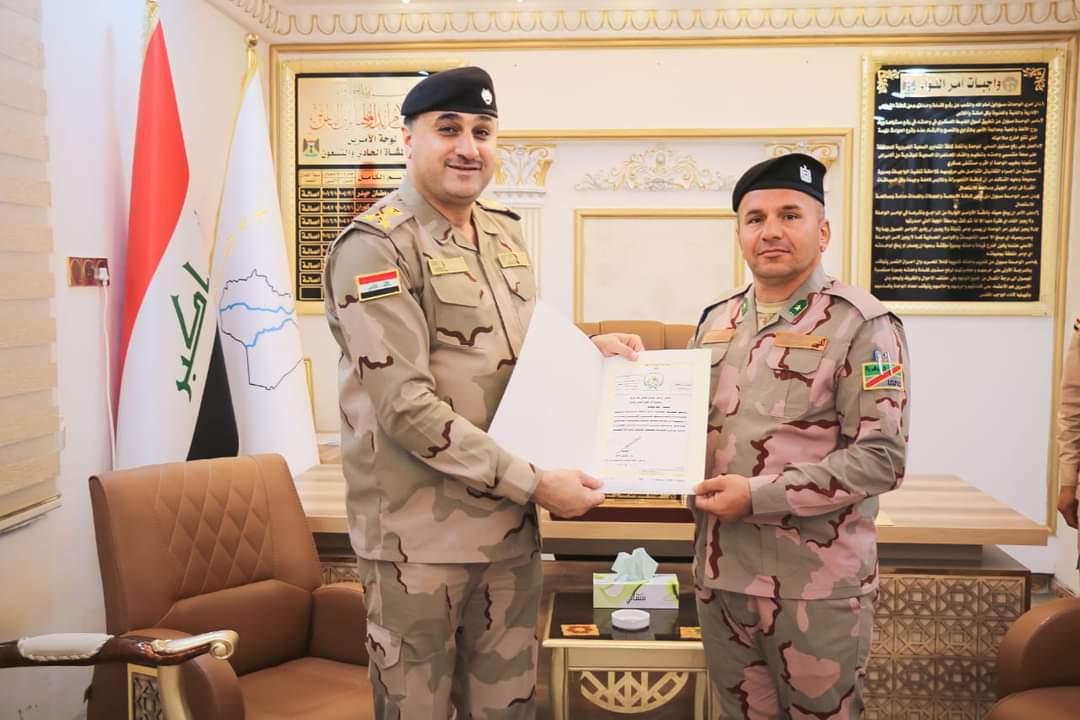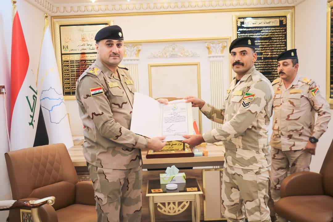 كرم آمر اللواء المشاة الحادي والتسعين/ الفرقة المشاة الحادية والعشرين في الجيش العراقي ، عدداً من المقاتلين المنسوبين الى الفوج الثاني للواء أعلاه، لإخلاصهم في عملهم، بكتاب شكر وتقدير لهم فضلاً عن الدعم المادي . وفي الختام شكر المقاتلون آمر اللواء لرفعه روحهم المعنوية ومتابعته المستمرة لهم. الى ذلك كرم آمر الفوج الثاني/ اللواء المشاة الرابع والأربعين/ الفرقة المشاة الحادية عشرة عدداً من المراتب لجهودهم المبذولة في المهام والواجبات الموكلة إليهم وجاء هذا التكريم ليكون حافزاً لبقية المقاتلين..