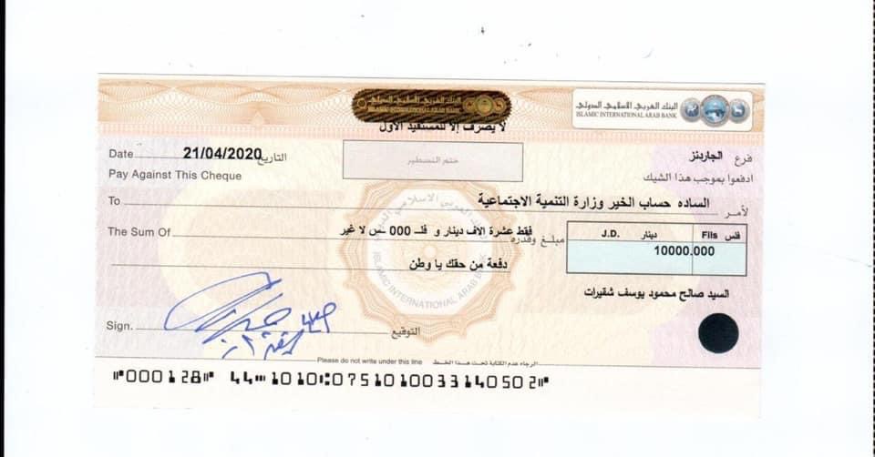 أيماناً منا بتأدية هذا الواجب فقد قمنا بتقديم دفعه من حق الاردن في أعناقنا والمساهمة بمبلغ ١٠٠،٠٠٠ مائة الف دينار لصندوق همة وطن و١٠،٠٠٠عشرة آلاف دينار لكل من وزارة التنمية الأجتماعة و و١٠،٠٠٠عشرة آلاف دينار لوزارة الصحة .