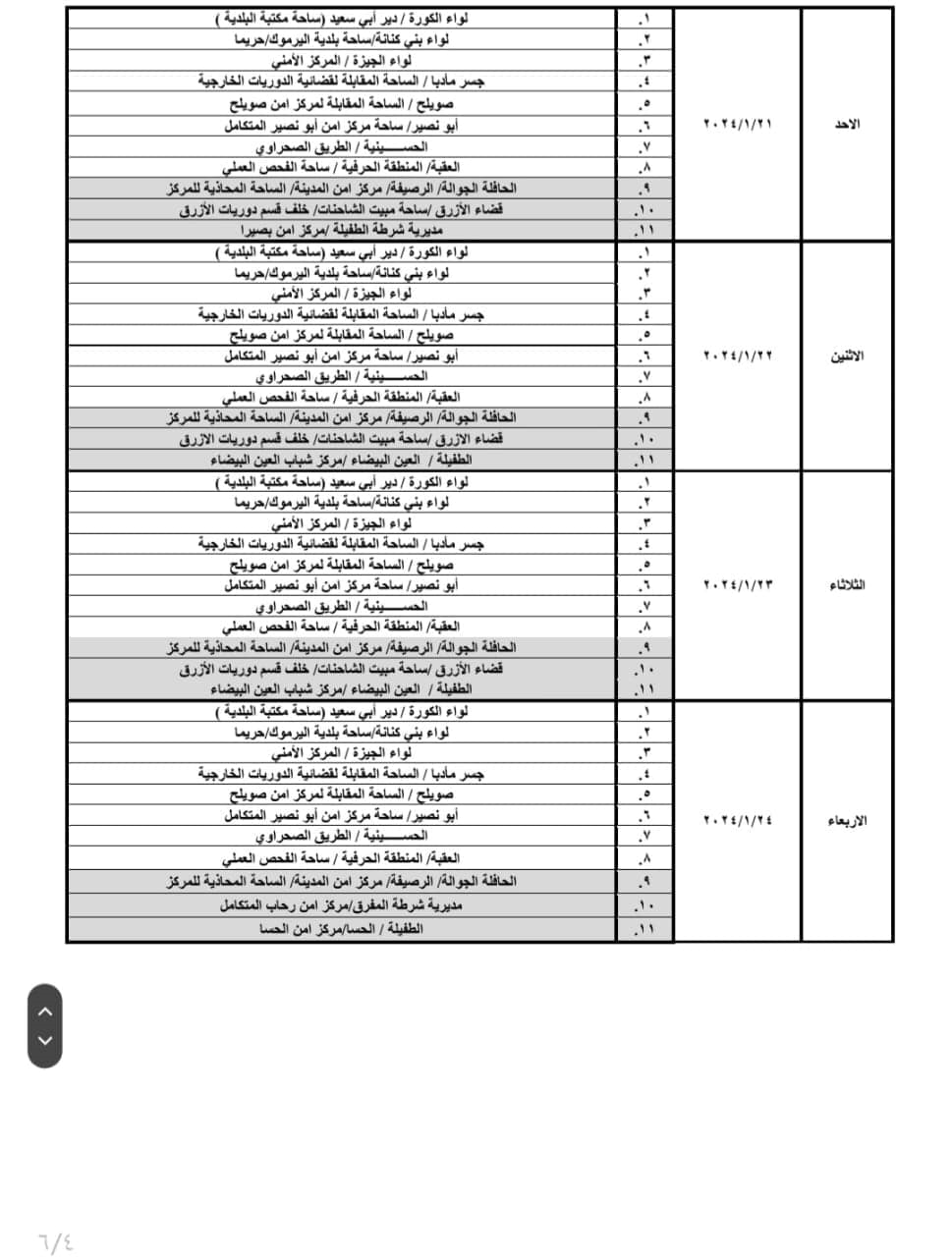 أعلنت إدارة ترخيص السواقين والمركبات مواعيد العمل بجولات الترخيص المتنقل ضمن المبادرة الإبتكارية ( بنوصلك ) خلال شهر كانون الثاني لعام 2024 الجاري في عدد من مناطق المملكة. وقالت الادارة إنه ستكون ساعات الدوام للترخيص المتنقل من يوم الاحد لغاية الاربعاء من الساعة 8 صباحاً وحتى الساعة الثانية ظهراً. ويوم الخميس من الساعة الثامنة صباحاً حتى الواحدة ظهرا . وتاليا مواعيد العمل بجولات الترخيص المتنقل: