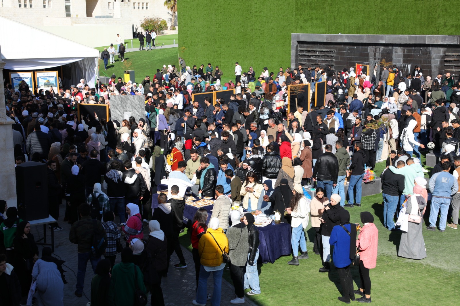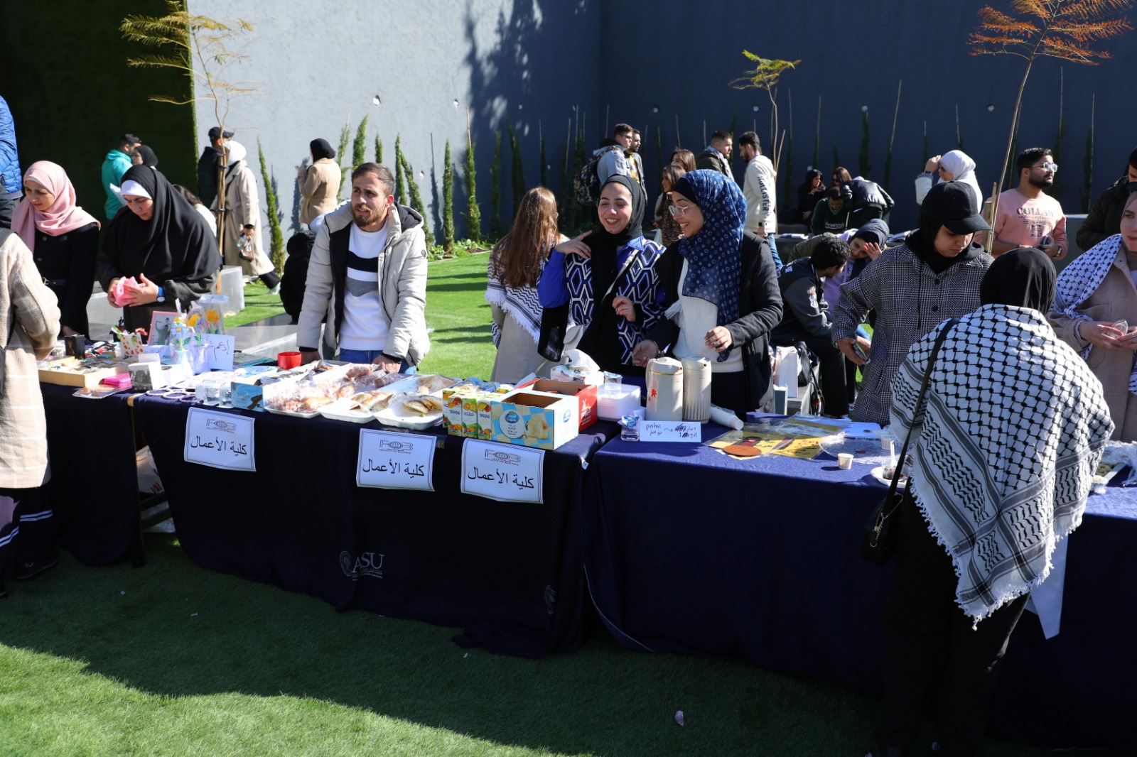 انطلاقاً من واجبنا تجاه القضية الفلسطينية ودعماً لصمود أهلنا في غزة العزة أقامت جامعة العلوم التطبيقية الخاصة فعالية "معرض طوفان الأقصى" بتنظيم من طلبة الجالية الفلسطينية بالجامعة وبحضور رئيس مجلس أمناء الجامعة الدكتور هيثم عبدالله أبوخديجة، ورئيس الجامعة والعمداء الأفاضل والعديد من أعضاء الهيئة التدريسية والإدارية وبمشاركة كبيرة من الطلبة.وقد ضم المعرض العديد من الأركان حيث عبر كل ركن منها عن مشاهد متكررة من ذاكرة الشعب الفلسطيني الصامد أهمها: ركن الهاشميون، ركن الشهداء، ركن السجون والمعتقلات، ركن طوفان الأقصى، ركن الحروب والثورات، ركن المخيمات، ركن المسجد الأقصى، ركن المقاطعة، ركن التراث، ركن المدن الفلسطينية، أصوات من غزة، وركن الأدب المقاوم، كما شاركت كليات الجامعة المختلفة وطلبتها في البازار الخيري الذي يعود ريعه لدعم أهلنا في غزة بالإضافة لإقامة العديد من الأنشطة التفاعلية لطلبة الجامعة.وتهدف مثل هذه الفعاليات لتوعية طلبة الجامعة وتذكيرهم بما يجري من أحداث ولا سيما بحلول العام 2024 لتكون مواقفهم دائماً داعمة ومؤازرة للقضية الفلسطينية، بالإضافة لمشاركتهم أمنياتهم لفلسطين بالعام الجديد، وقد لاقت الفعالية بحمد الله تجاوباً كبيراً من الطلبة والذي يدل على حجم وعيهم ومسؤوليتهم تجاه الأمة العربية والإسلامية وتحديداً فلسطين الأبية.
