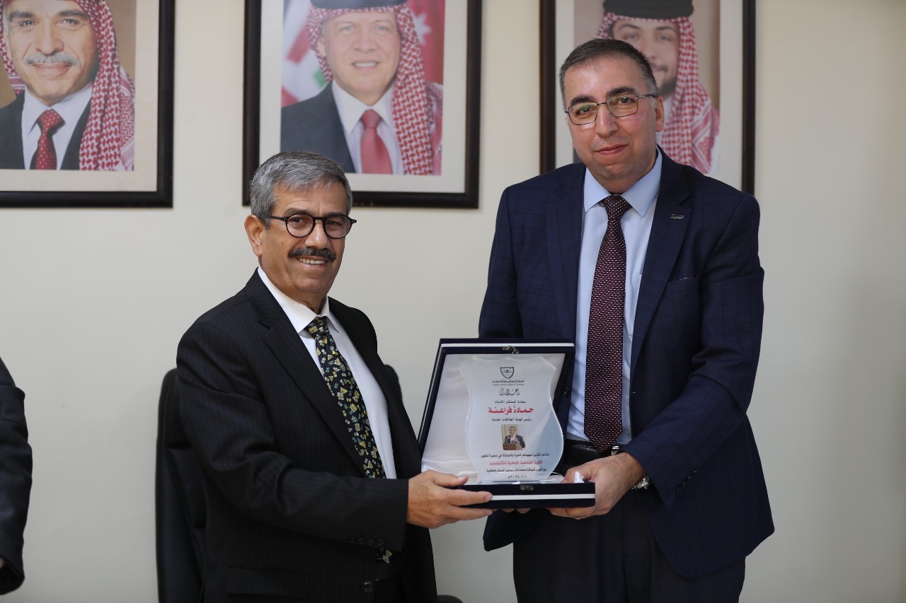 وقد القى العميد الدكتور أحمد السلايمة كلمة اشاد فيها في الجهد الذي بذله المستشار حماده فراعنة والذي استحق هذا التقدير عن كفاءة وقدرة .
