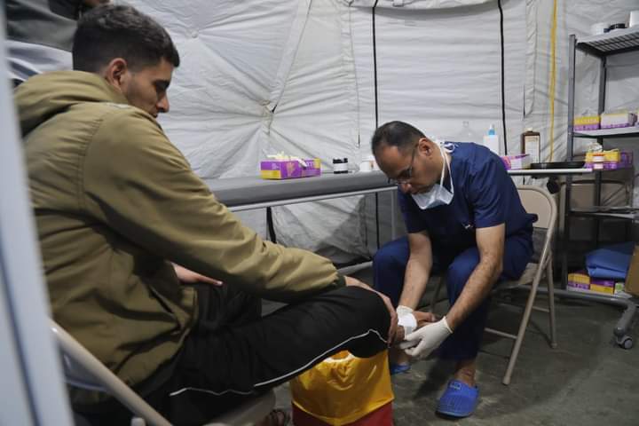 تواصل مرتبات المستشفى الميداني الأردني الخاص/2 في خان يونس جنوب قطاع غزة، تقديم دورها الطبي والإنساني للجرحى والمصابين، في ظل استمرار القصف الإسرائيلي على قطاع غزة.