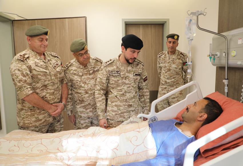 عقب لقائه مرتبات المستشفى الميداني الأردني السابق في غزة/ 76، زار سمو الأمير الحسين بن عبدالله الثاني، ولي العهد، اليوم الخميس، المصاب العسكري من مرتبات المستشفى الميداني الأردني الخاص/2 في خان يونس جنوب قطاع غزة، والذي يرقد على سرير الشفاء بمدينة الحسين الطبية، إثر تعرضه أمس للإصابة نتيجة اشتباكات في محيط المستشفى.واطمأن سموه، خلال الزيارة التي رافقه فيها مدير عام الخدمات الطبية الملكية، على حالة المصاب الصحية، متمنيًا له الشفاء العاجل.وكانت القوات المسلحة الأردنية - الجيش العربي، أخلت المصاب جوًا إلى مدينة الحسين الطبية لتلقي العلاج اللازم.كما زار سموه، مدير المستشفى الميداني الأردني السابق في غزة/ 76، العقيد زياد السعيد، الذي يرقد على سرير الشفاء إثر عارض صحي ألم به بعد انتهاء مهمته وعودته للمملكة، ما أدى لتعذره من حضور لقاء ولي العهد اليوم بمرتبات المستشفى في الديوان الملكي.