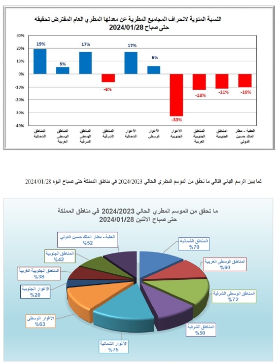 والرسم البياني يبين وضع الموسم المطري الحالي حتى الساعة التاسعة من صباح هذا اليوم 28/01/2024 في أغلب المناطق: