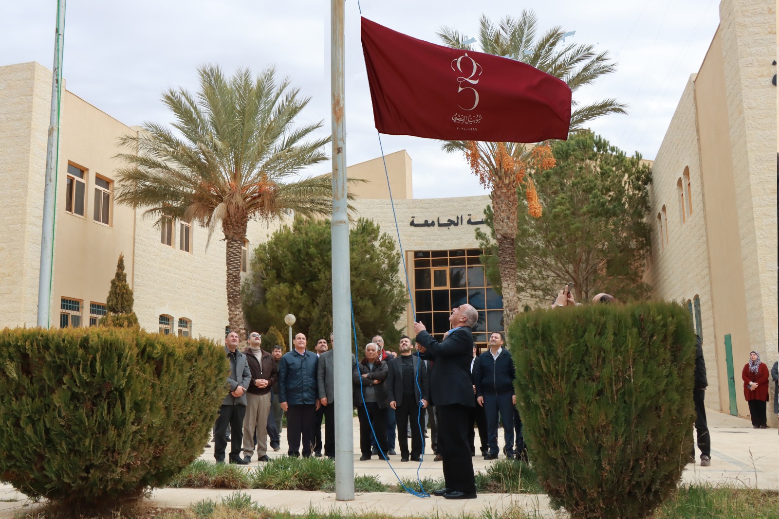رئيس جامعة الحسين بن طلال يرعى مراسم رفع علم "اليوبيل الفضي" للجلوس الملكي.