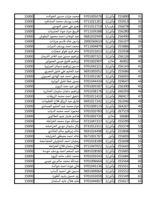 الدفعة الفرعية رقم (2) لمستحقي القروض الاسكانية العسكرية لشهر حزيران.
