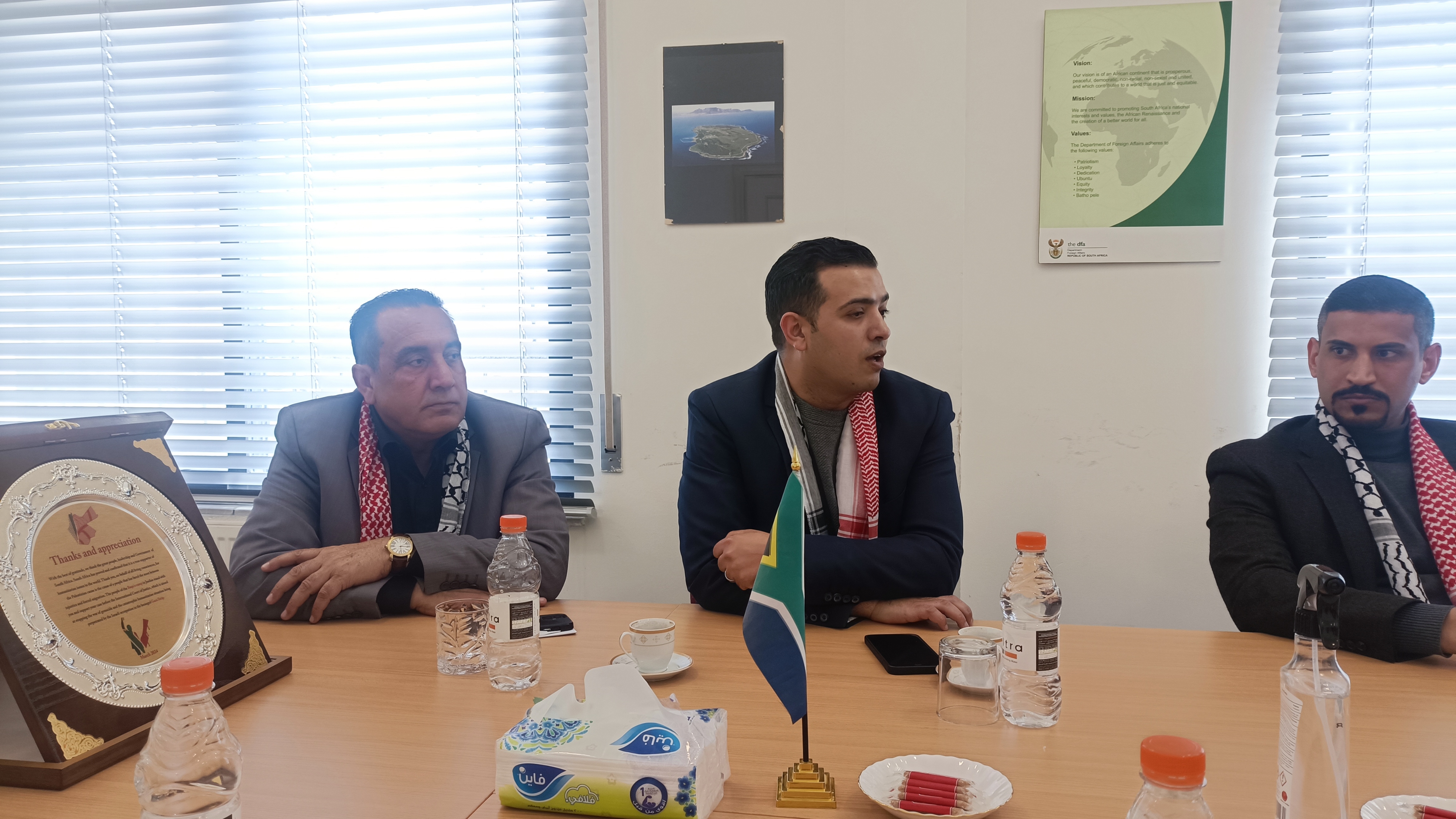 وأشاد السيد أكرم بدران بموقف جنوب أفريقيا المناصر للقضايا الإنسانية في العالم و قضية فلسطين و قطاع غزة خصوصاً وشكر بدران سعادة السفيرة و أكد ان الأردن قيادة و شعب يقفون بجانبهم في القضية العادلة المرفوعة أمام محكمة العدل.