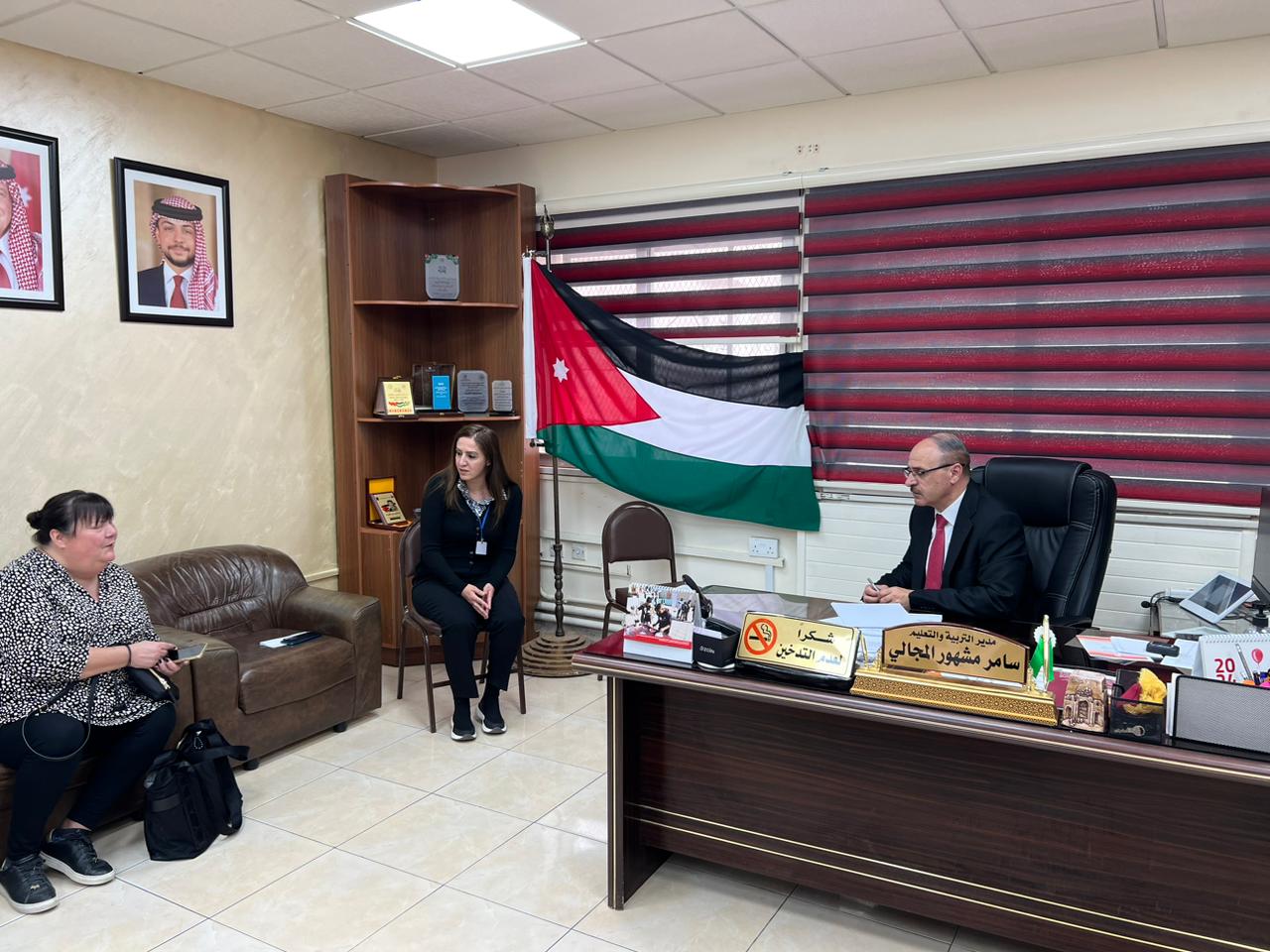 أستقبل مدير التربية والتعليم لمنطقة الكرك الأستاذ سامر المجالي في مكتبه اليوم الاثنين الموافق 18 / 3 /2023م ، المقيمة Claire cheater وذلك لتقييم برنامج BTEC تخصص الضيافة في مدرسة الحسين الثانوية المهنية الشاملة للبنين .