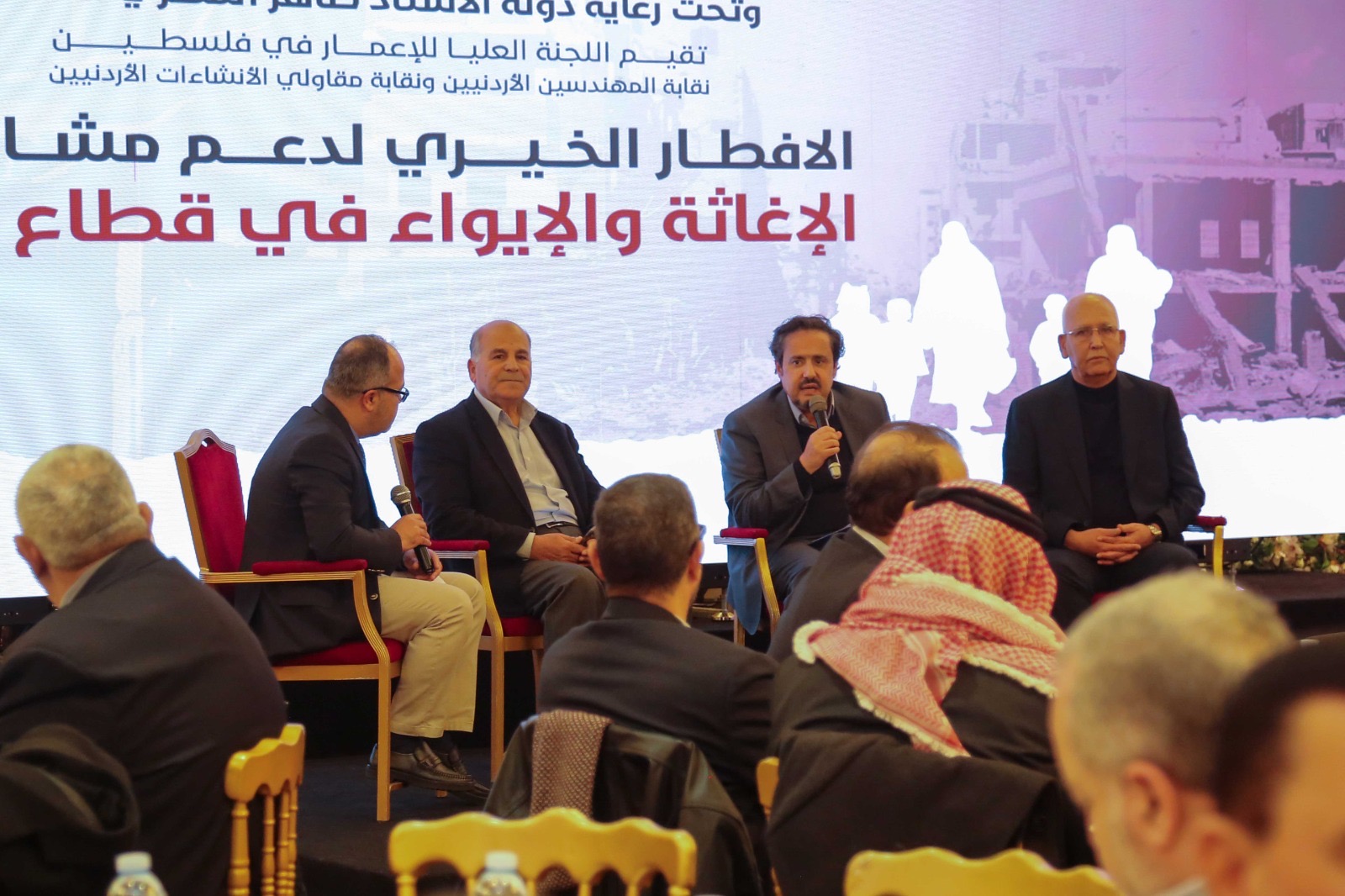 من جانبه أكد رئيس اللجنة العليا للاعمار في فلسطين نقيب المهندسين الاردنيين ، المهندس أحمد سمارة الزعبي ان هذا الافطار الخيري الذي تقيمه اللجنة العليا للاعمار في فلسطين، يأتي لصالح جمع التبرعات لإغاثة وايواء اهلنا الصامدين في قطاع غزة الذين يتعرضون لعدوان همجي بربري، يستهدف الانسان والحجر والشجر، والتجويع، والابادة الجماعية امام مراى العالم اجمع ،