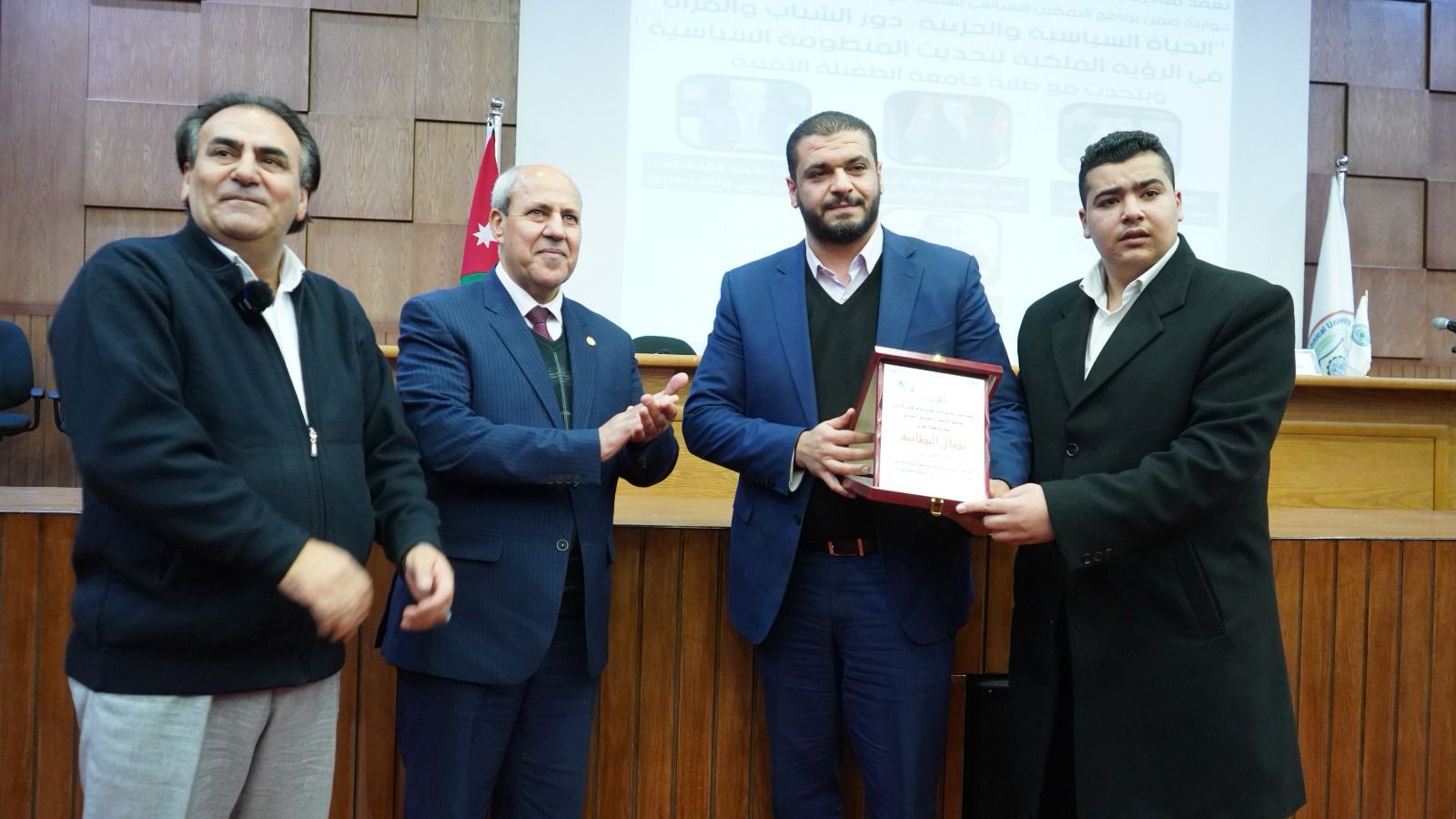 وتأتي هذه الندوة التي رعاها رئيس الجامعة الدكتور بسام زعل المحاسنة، وشارك فيها الى جانب العوران ،النائب الأسبق محمد القطاطشة وعضو المجلس السياسي في الحزب المسؤول في المبادرة الدكتور علي قوقزة ورئيس المبادرة سيف بني مصطفى، ضمن فعاليات برنامج التمكين السياسي للشباب في الجامعات الأردنية.