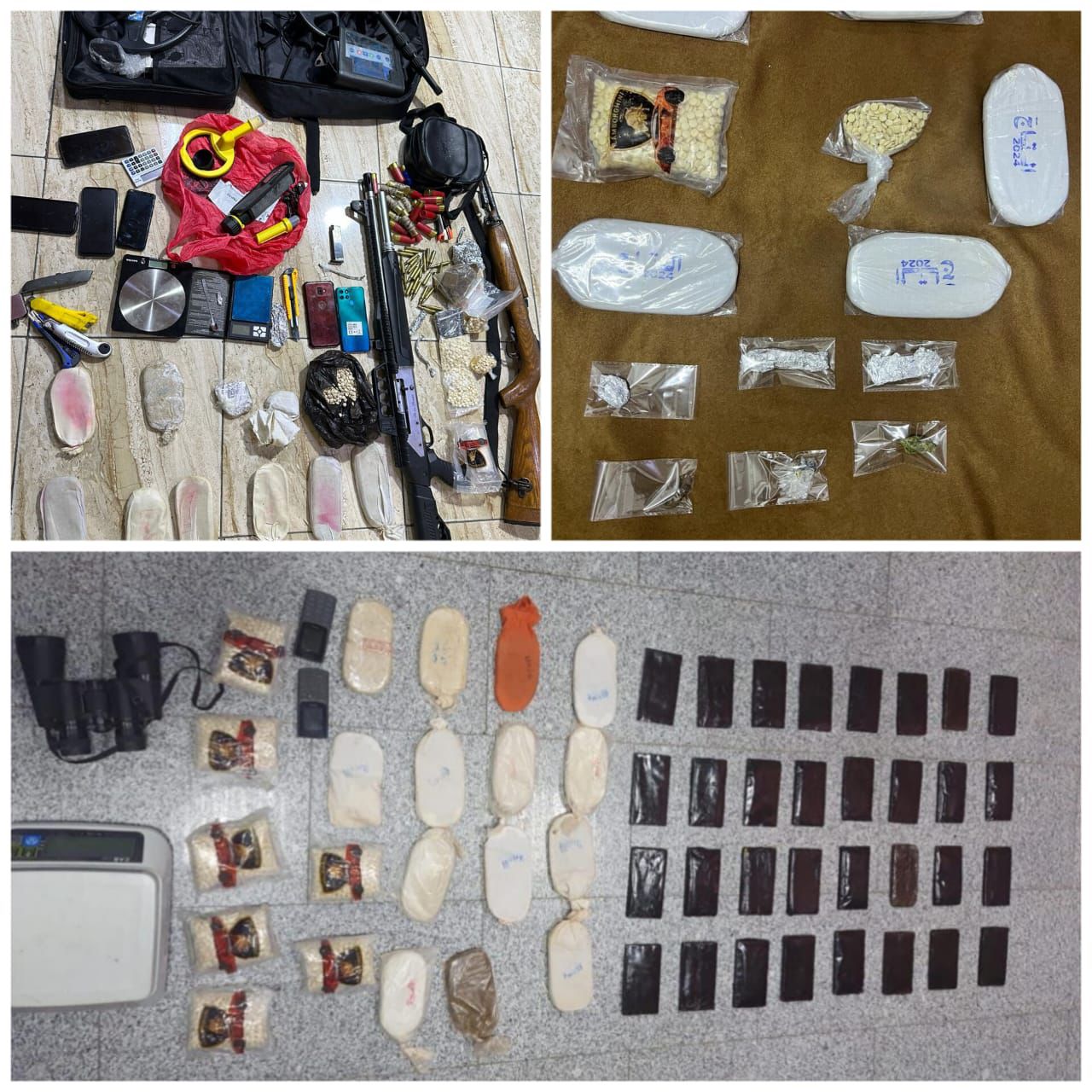 وفي محافظة الزرقاء أُلقي القبض على مروجَين للمخدرات بعد مداهمتهما وضبط بحوزتهما 2000 حبة مخدرة و 8 كفوف من مادة الحشيش ، فيما أُلقي القبض كذلك في محافظة الكرك على مروجين للمخدرات وضبط بحوزتهما 39 كف حشيش وكمية من الحبوب المخدرة.