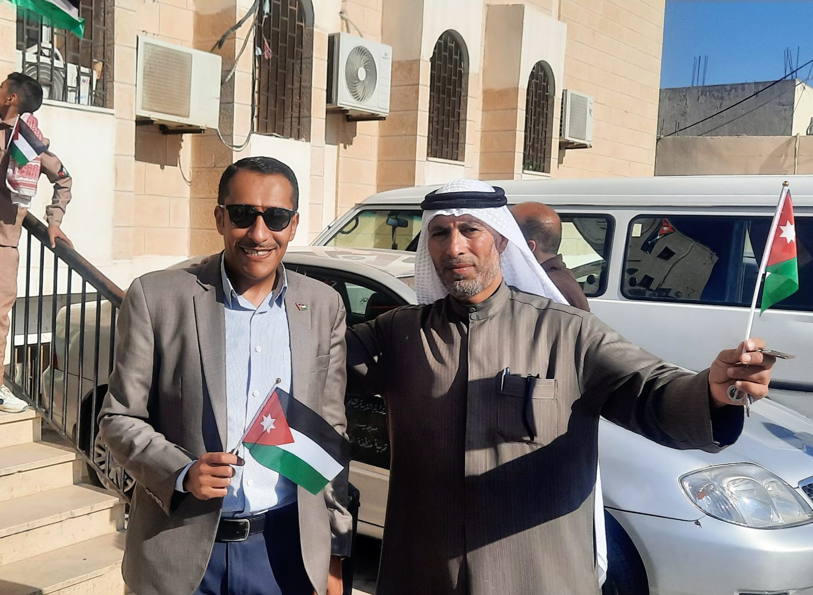 وتضمنت فعالية يوم العلم زيارة لعدد من الدوائر الحكومية والأمنية وتوزيع الأعلام ومشاركة الفرحة والبهجة بهذا اليوم العزيز على كل الاردنيين
