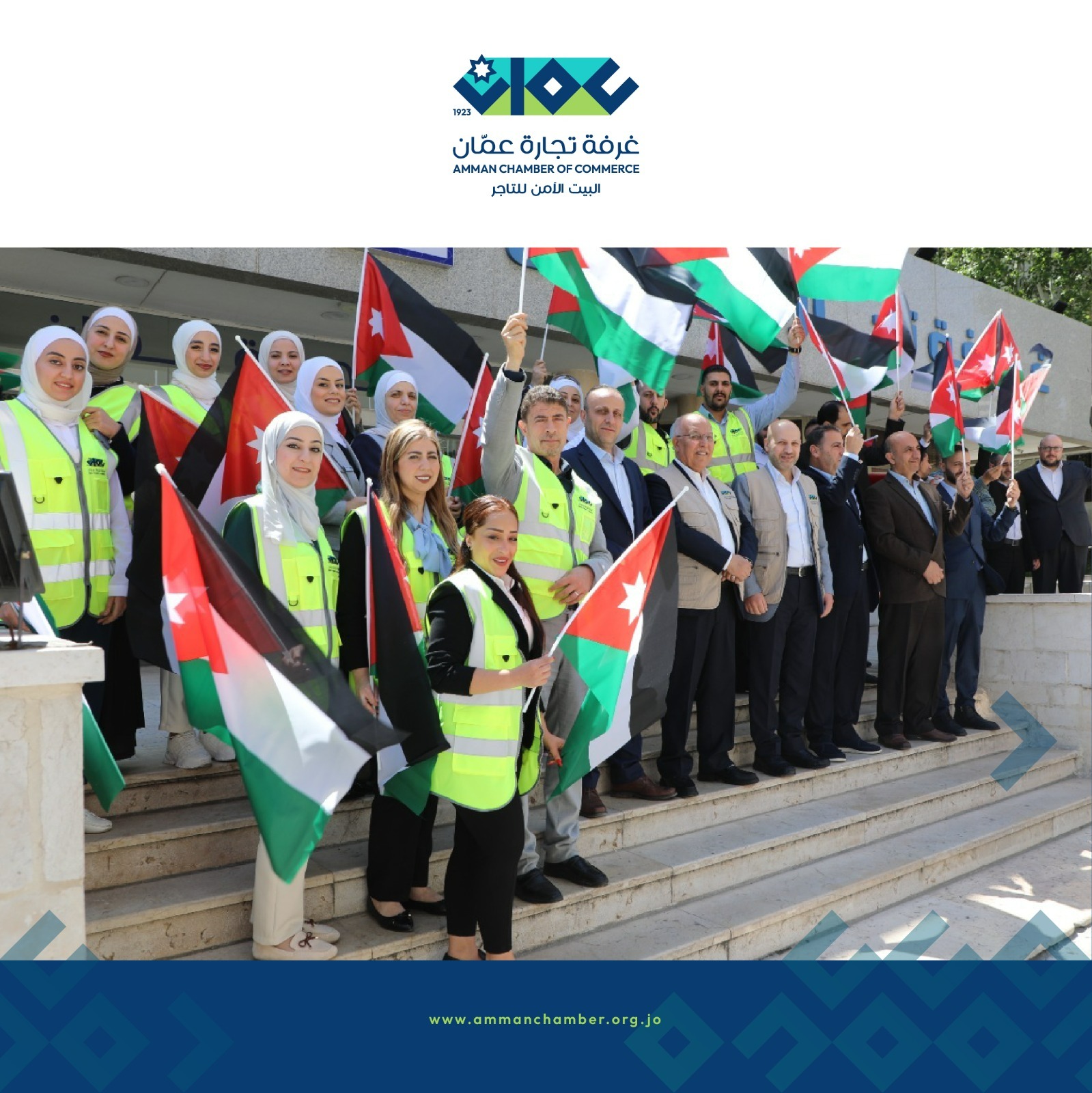 شاركت غرفة تجارة عمان اليوم الثلاثاء في حملة "علمناعال" من خلال توزيع الأعلام على المواطنين والسائقين في منطقة الشميساني، إحتفاءً باليوم الوطني للعلم الأردني، الذي يصادف 16 نيسان من كل عام.