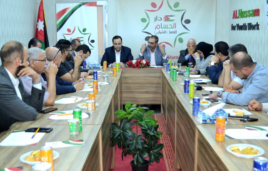 استضافت دار الحسام للعمل الشبابي النائب السابق قيس زيادين نائب الامين العام للحزب المدني الديمقراطي في جلسة سياسية حوارية بعنوان {أهمية امتلاك الاحزاب لون سياسي}
