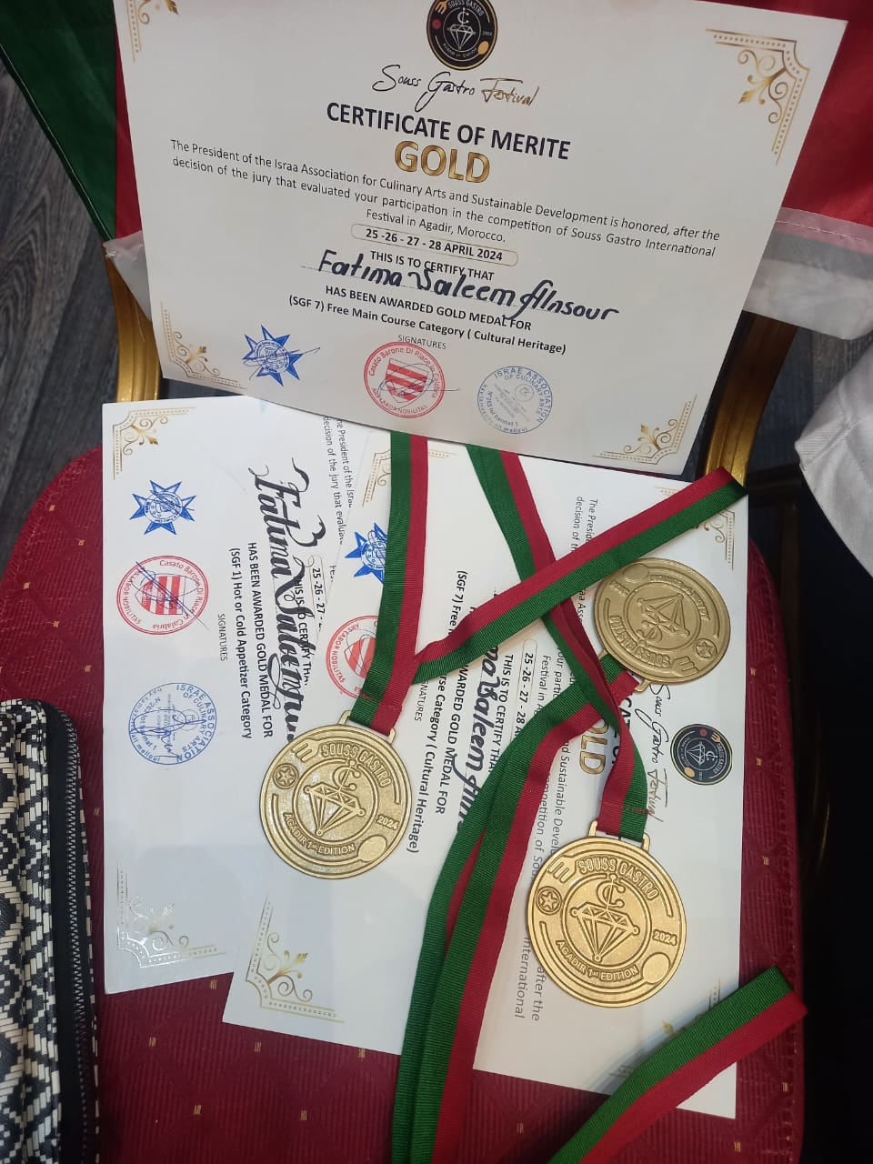 حصدت الدكتورة فاطمة النسور 3 ميداليات ذهبية عن الأكلات الأردنية موروثنا الشعبي خلال مشاركتها في مهرجان سوس كاسترو المقام في منطقة أغاديربالمملكة المغربية،بدعم من هيئة تنشيط السياحة.