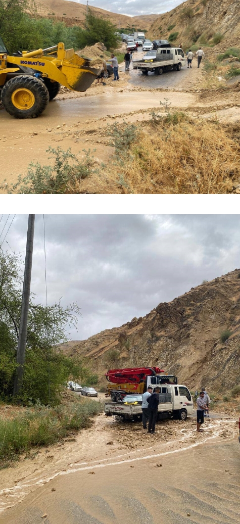 وبينت بلدية الشونة الوسطى في صفحتها عبر "فيسبوك" أن رئيس البلدية احمد العدوان وجه فريق طوارئ البلدية لإزالة الحجارة والأتربة عن طريق وادي شعيب.