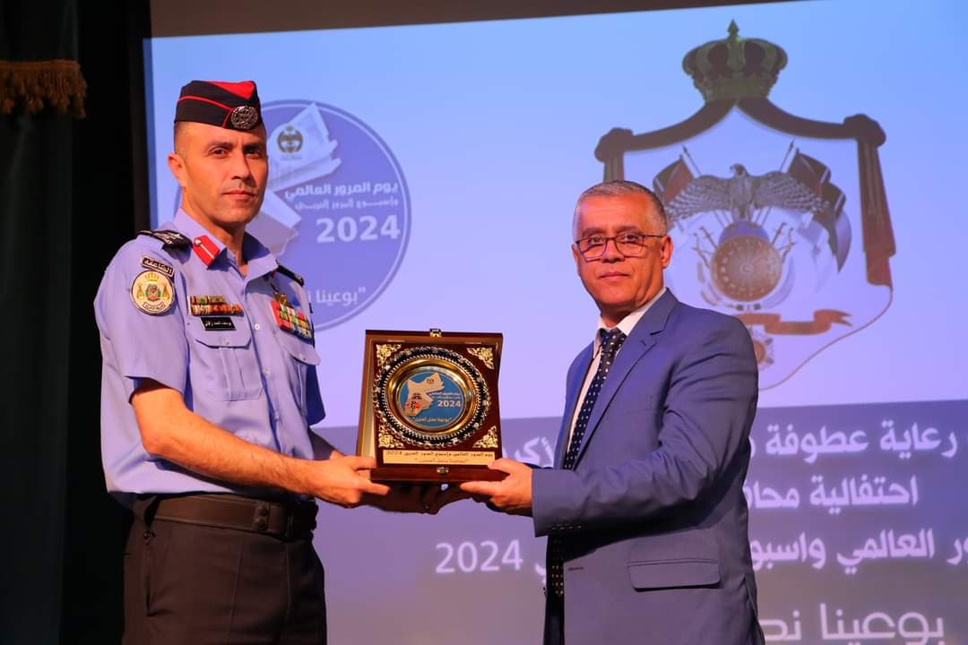 رعى مساعد محافظ الكرك عطوفة المتصرف خالد توفيق الجعافرة بحضور عطوفة نائب مدير الشرطة ورئيس مجلس المحافظه وعدد من رؤساء البلديات وعدد من مدراء الدوائر الرسمية وفعاليات المجتمع المحلي احتفالية محافظة الكرك بيوم المرور العالمي واسبوع المرور العربي لعام 2024 والتي جاءت تحت شعار (بوعينا نصل أمنين)