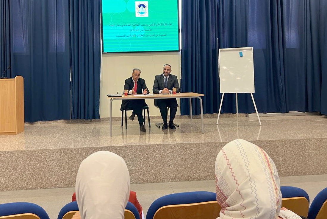 بدعوة من كلية الآداب والعلوم / قسم الإعلام الرقمي في جامعة العقبة للعلوم والتكنولوجيا، وبحضور عميد الكلية الدكتورة عبير أبو دية، وأستاذ الإعلام الرقمي والعلاقات العامة الدكتور وسام الزعبي، ومدير النشاطات الفنية والموسيقية الدكتورة رولينا، وطلبة قسم الإعلام الرقمي في الكلية، قدم الخبير والمستشار الإعلامي مدير العلاقات العامة في شركة العقبة للمطارات / مطار الملك الحسين الدولي عمر صمادي محاضرة بعنوان (العلاقات العامة ودورها في مسيرة المؤسسات نحو النجاح والتطور)