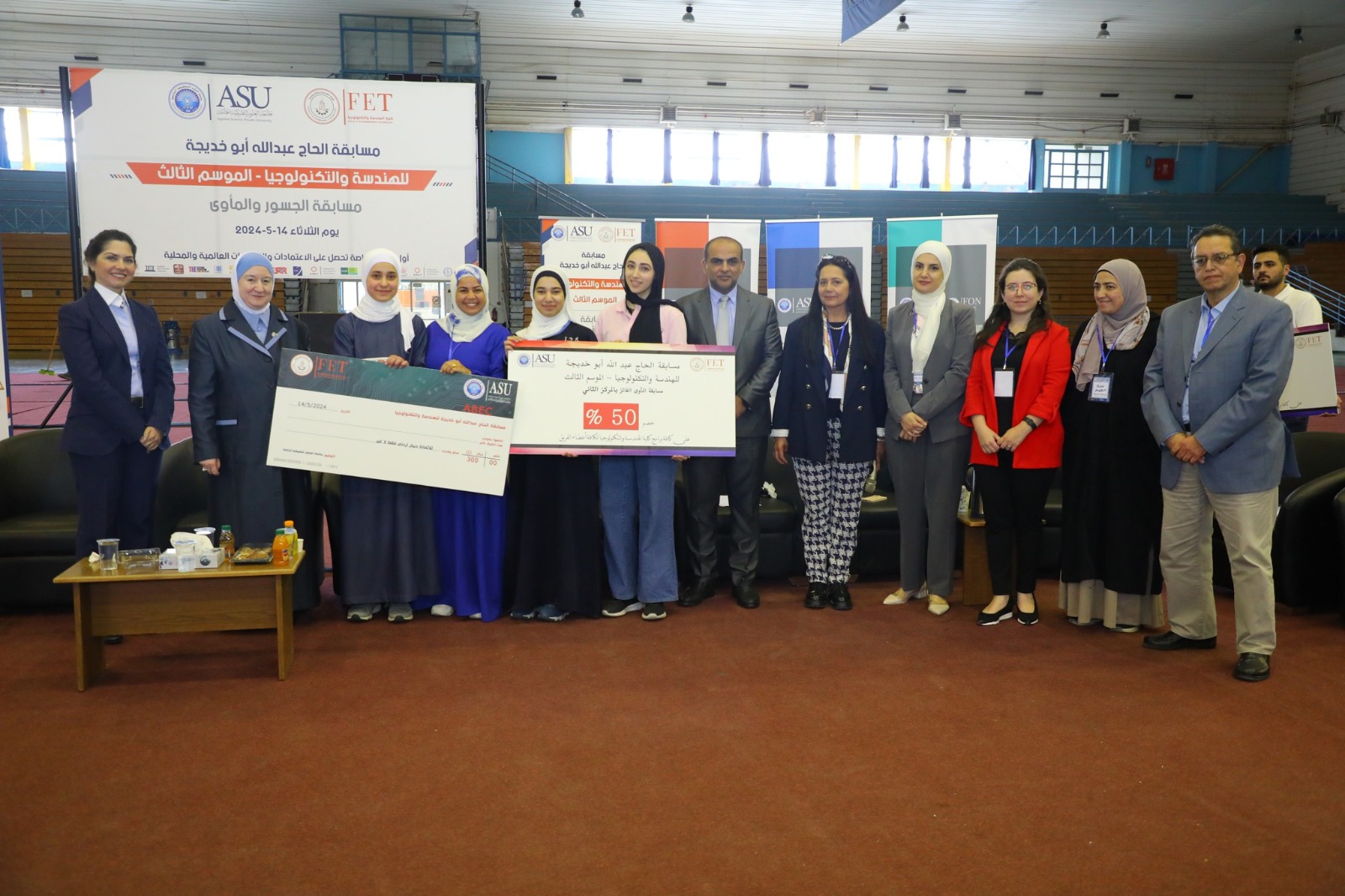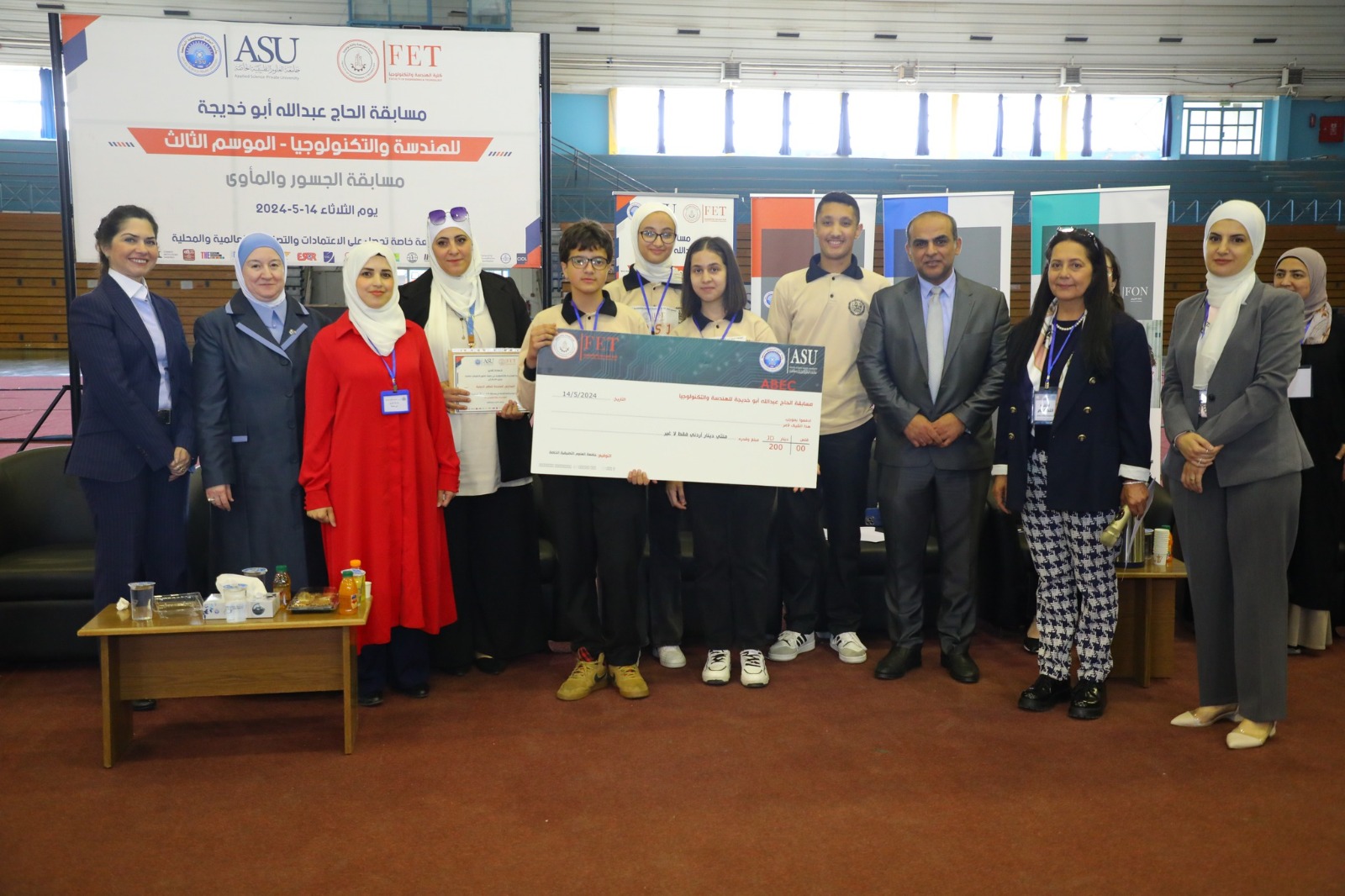 اختتمت كلية الهندسة والتكنولوجيا في جامعة العلوم التطبيقية الخاصة فعاليات مسابقة الحاج عبد الله أبو خديجة للهندسة والتكنولوجيا" بموسمها الثالث والتي تهدف إلى نشر الثقافة الهندسية بين طلبة المدارس من خلال طرح مسابقتين هما مسابقة تصميم الجسور ومسابقة تصميم المأوى. وتتمثل فكرة مسابقة الجسور بشكل رئيس بتصميم مجسم جسر من عيدان خشبية ضمن مواصفات معينة وأبعاد محددة حيث يتم اخضاع هذه الجسور لأحمال وأوزان من مركز التعليق المخصص ومن ثم تقييمها وفق قدرتها على تحمل هذه الأوزان نسبةً إلى وزنها. بينما تتمثل فكرة مسابقة المأوى بقيام كل فريق بتصميم فراغ محدد بجدران وسقف أو أسقف يعبر عن حاجة وظيفية قابل للتوسع أفقياً أو رأسياً أو كلاهما ضمن مواصفات معينة وأبعاد محددة.وتمت المسابقة بحضور عدد من المشاركين من مختلف المدارس الخاصة في عمان حيث شارك فيها ما يقارب 32 فريق توزعوا بين 24 فريق ضمن مسابقة تصميم الجسور و 8 فرق ضمن مسابقة تصميم المأوى، حيث قام كل فريق بعرض عمله وتم إخضاع كل مشروع لمراحل متعددة لتحديد الفائزين ابتداءً من مرحلة التسجيل ومن ثم الفحص والمطابقة والتقييم وصولاً إلى مرحلة التحكيم النهائية.وفي الختام تم إعلان تكريم جميع المدارس المشاركة بالمسابقة من قبل رئيس الجامعة بالإضافة لتقديم الجوائز للفرق الفائزة بالمراكز الثلاث الأولى ضمن فعالية احتفالية خاصة قامت بتنظيمها كلية الهندسة والتكنولوجيا بجامعة العلوم التطبيقية الخاصة.