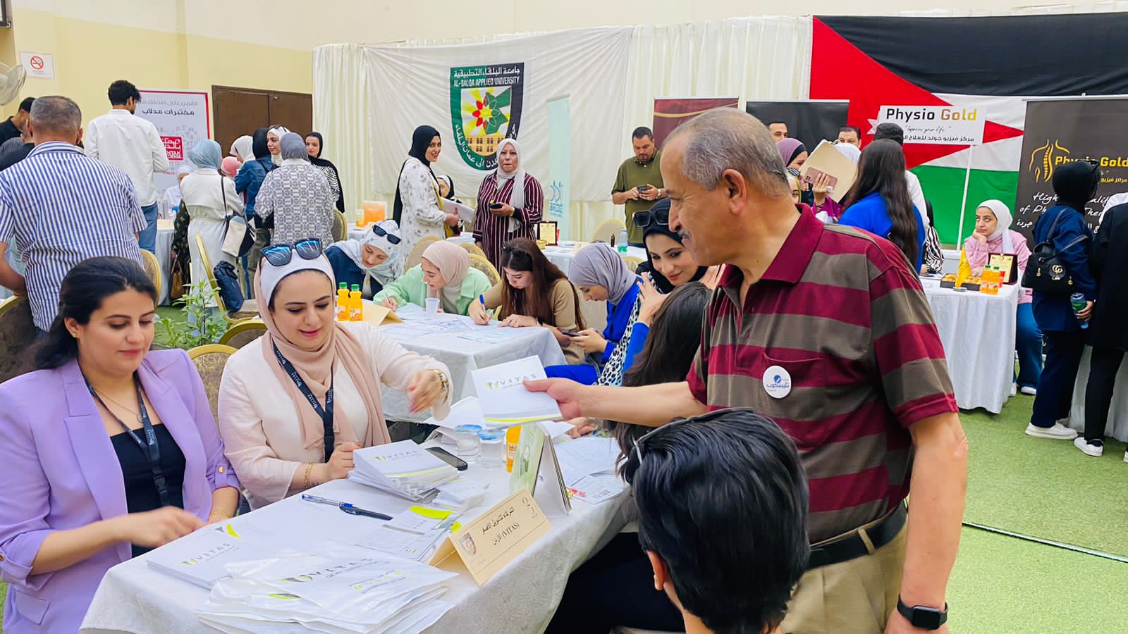وأكّد عميد الكلية على أن اليوم الوظيفي مبني على التشاركية بين القطاعين العام والخاص ويعمل على فتح آفاقٍ للطلبة الخريجين وأبناء المجتمع المحلي في سوق العمل ، حيث يتمثل دور الجامعة بتوفير اقامة برامج تدريبية وتأهيلية لاكساب الطلبة المهارات والخبرات العملية التي تمكنهم من دخول سوق العمل في مختلف التخصصات العلمية، كما يتم العمل على إدماجهم بالسوق بطرق سلسة وممنهجة لدى مختلف الشركات حيث يتم اتاحة الفرصة للطالب أو الخريج الالتقاء المباشر مع أصحاب الشركات والمؤسسات والمصانع لاطلاعهم على خبراتهم وقدراتهم العلمية والعملية بغرض توظيفهم والمساهمة في الحد من البطالة.واشتمل اليوم الوظيفي على معرض لمختلف المؤسسات والشركات من القطاعات الصحية والتجارية والتعليمية والصناعية ذات العلاقة في مجالات الألبسة والأغذية والهيئات الشبابية، حيث تم اتاحة الفرصة لما يقارب (667) من الطلبة الخريجين والمتوقع تخرجهم بتقديم طلبات توظيف للشركات المشاركة في اليوم الوظيفي حيث سيخضعون لاحقا لاجراءات التوظيف من مقابلات واختبارات حسب الأسس المعمول بها في تلك الشركات، كما تم اجراء عدد من الفحوصات المجانية والاستشارات الطبية والتغذوية والتجميلية من الشركات ذات العلاقة.