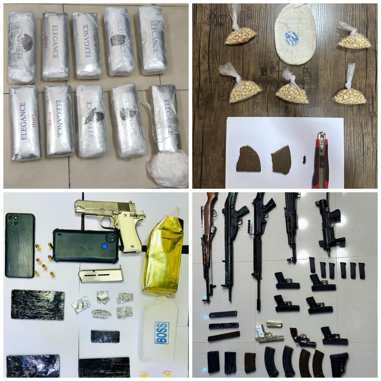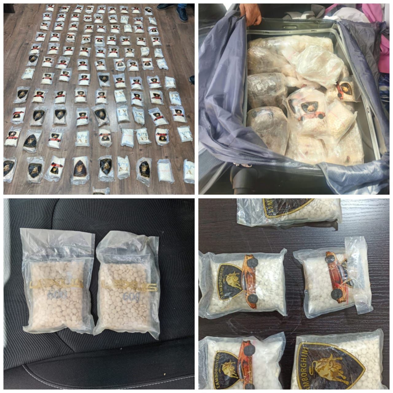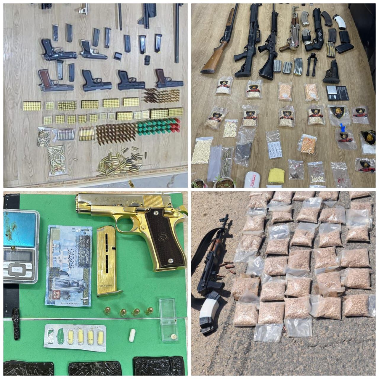 قال الناطق الإعلامي باسم مديرية الأمن العام إنّ العاملين في إدارة مكافحة المخدرات واصلوا جهودهم اليومية لملاحقة تجّار الموت ومروجيها ومهربيها، وتمكنوا خلال الأيام القليلة الماضية من إلقاء القبض على ٣٦ تاجراً ومروجاً ومهربا خلال تعاملهم مع ١٥ قضية وحملات أمنيّة في مختلف مناطق ومحافظات المملكة. وأكّد الناطق الإعلامي أنّ أبرز تلك الحملات كانت ضمن اختصاص محافظة المفرق، بعد جمع المعلومات وتحديد مكان وجود عدد من أخطر المطلوبين وتجّار المخدات ومروجيها، إذ تم بإسناد من الفريق الخاص التابع للإدارة مداهمة مواقعهم في آن واحد، وأفضت الحملة لإلقاء القبض على ١١ مطلوباً وتاجراً ومروجاً، وضبط بحوزتهم ما مجموعه ( ١٠ آلاف حبة مخدرة و ١١ سلاحاً نارياً مختلفاً وكمية كبيرة من الذخيرة الحيّة وكمّيات من مواد الحشيش والكوكايين المخدرة) . ونُفّذت كذلك حملة أمنيّة في مناطق جنوب العاصمة أُلقي القبض خلالها على خمسة تجّار ومروجين للمخدرات وضبط بحوزتهم كمّيات متفرقة من المواد المخدرة المعدة للبيع ،فيما نُفّذت في محافظة عجلون حملة أخرى أُلقي القبض خلالها على شخصين من أخطر مروجي المخدرات في المحافظة . وكانت أبرز القضايا إحباط تهريب ١٢.٥ كغم من مادة الكريستال عبر معبر حدود جابر، حيث تمت متابعة معلومات حول القضية ومتابعتها وجرى إحباط عملية التهريب تلك والمواد القاتلة التي كانت موجودة داخل عبوات تبغ، وفي الوقت ذاته أُلقي القبض على شخصين قادت إليهم التحقيقات بتورطهما في القضية وأنّ الكمية المهرّبة كانت قادمة لصالحهما . وفي غرب البلقاء تابع العاملون في الإدارة معلومات حول قيام شخصين بتجهيز كمية كبيرة من الحبوب المخدرة تمهيداً لتهريبها إلى دولة مجاورة ، وجري تحديد طريقة التهريب داخل حقيبة سفر ومكان المواد المخدرة والمتورطين وجرى مداهمتهما وأُلقي القبض عليهما وضبطت كذلك حقيبة السفر التي تبيّن بداخلها ١٠٠ ألف حبة مخدرة. وفي جنوب العاصمة وبعد جمع المعلومات حول أحد الأشخاص المشبوهين بقضايا الاتجار بالأسلحة النارية والتأكد من حيازته وعرضه لكمية من الأسلحة النارية للبيع جرت مداهمته وإلقاء القبض عليه وضبط داخل منزله ٨ أسلحة نارية متنوعة من بينها أسلحة أوتوماتيكية. وفي البادية الشمالية تم التعامل مع قضيتين نوعيتين ، تم في الأولى إلقاء القبض على ثلاثة تجّار للمخدرات بعد مقاومتهم للقوة الأمنية عند مداهمتهم وضبط بحوزتهم ٦٥ ألف حبة مخدرة وسلاح ناري أوتوماتيكي ، كما وأُلقي القبض في القضية الثانية على تاجر خطر للمخدرات بعد مداهمته وضبط بحوزته ٦٦ كفاً من مادة الحشيش المخدرة. وفي محافظة المفرق جرى التعامل مع ثلاث قضايا نوعية، أُلقي القبض في الأولى على تاجر للمخدرات مطلوب وبحقه حكم غيابي بالسجن ٢٠ عاما بعد مداهمته وضبط بحوزته ٢٠٠٠ حبة مخدرة ، كما وأُلقي القبض في القضية الثانية على مروج وبحوزته ٥٠٠٠ حبة مخدرة ، ودوهم في القضية الثالثة مروج آخر وأُلقي القبض عليه وبحوزته ١٤ كفاً من مادة الحشيش المخدرة . وفي البادية الوسطى أُلقي القبض على تاجر للمخدرات وبحوزته ٤٠٠٠ حبة مخدرة ، كما وألقي القبض في البادية الجنوبية على مروجَين للمخدرات وضبط بحوزتهما كمّيات من مادتي الماريجوانا المخدرة والحشيش المخدر، فيما تم إلقاء القبض على تاجر للمخدرات في محافظة معان بعد مداهمته في أثناء نقله ٢٠٠٠ حبة مخدرة بواسطة مركبته، وفي آخر القضايا جنوب العاصمة جرت مداهمة مروجَين للمخدرات وأُلقي القبض عليهما وضُبط بحوزتهما ٥ كفوف حشيش وسلاح ناري.