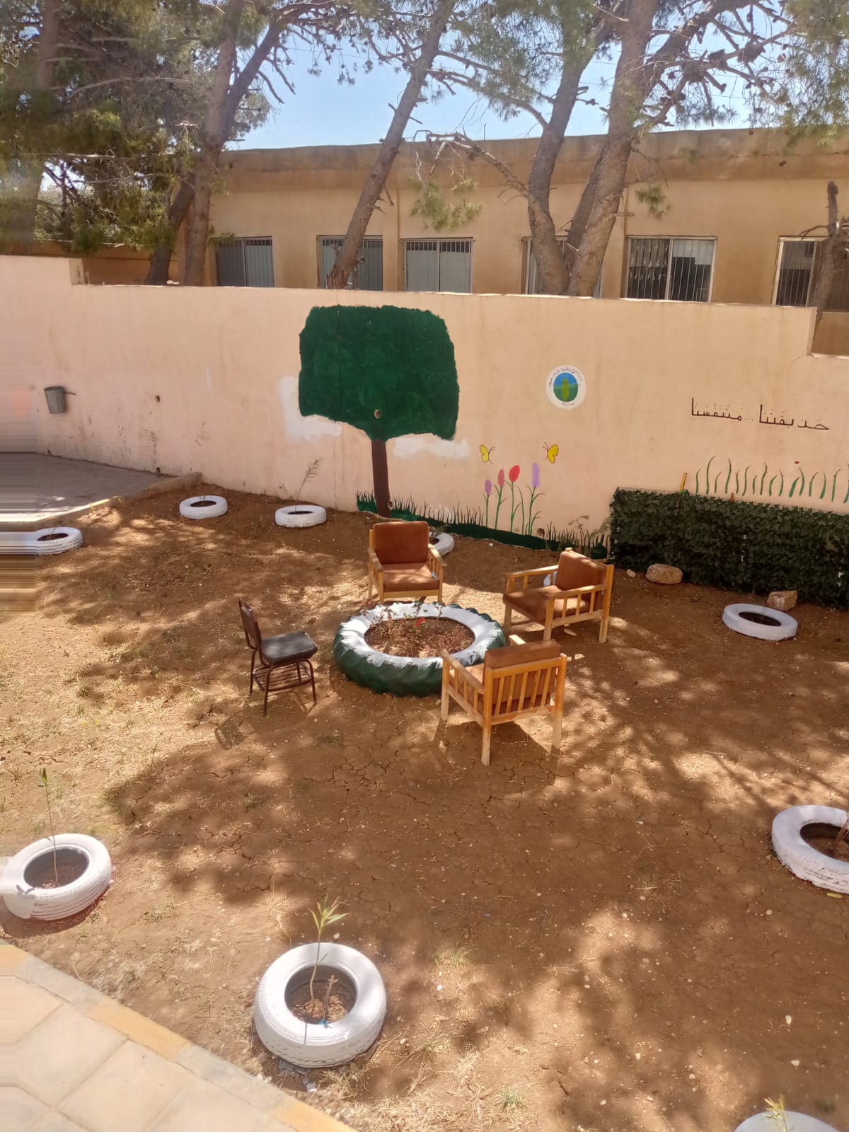 يتم فيها استثمار طاقات الطلبة بشكل إيجابي ضمن بيئة تعليمية آمنة، وتوفير مساحات للجلوس والحوار بمكان جميل يحتوي على مختلف النباتات التي يتم تكليف الطلبة في الإهتمام بها ورعايتها بشكل دوري لتعزيز قيم الولاء والإنتماء في نفوسهم.