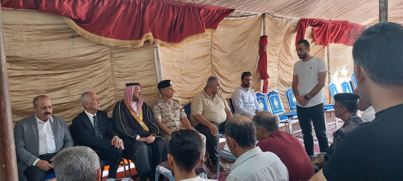 عمان- 1 تموز 2024 مندوبا عن جلالة الملك عبدالله الثاني، وسمو الأمير الحسين بن عبدالله الثاني، ولي العهد، قدم رئيس الديوان الملكي الهاشمي يوسف حسن العيسوي، واجب العزاء بشهيد الواجب الوكيل محمد أحمد الفوارس، من مرتب مديرية الأمن العام، الذي ارتقى إلى وجه ربه، متأثراً بإصابته أثناء قيامه بواجبه المقدس في الحفاظ على الأرواح، بواجب إنقاذ في لواء الرصيفة.