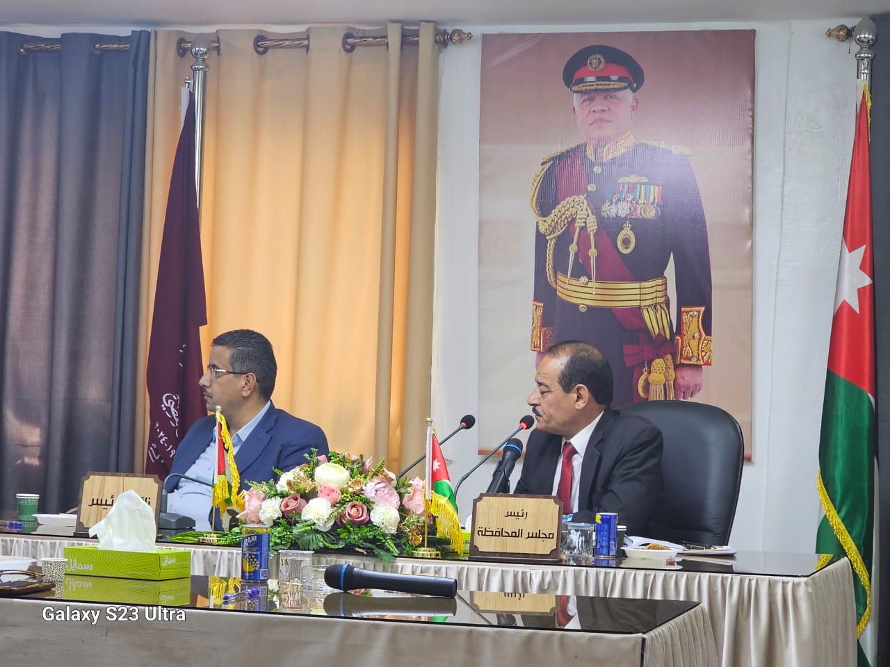 عقد مجلس محافظة الكرك جلسته الاسبوعيه بحضور رئيس مجلس المحافظة الدكتور عبدالله العبادلة وأعضاء المجلس ومدير اشغال المحافظة المهندس خالد العمرو ورؤساء البلديات فيما اقسم رئيس بلدية لواء مؤاب الجديده المهندس احمد الطراونه القسم القانوني امام المجلس وذلك لتعينه عضوا في المجلس بعد ترفيع قضاء مؤاب الى لواء
