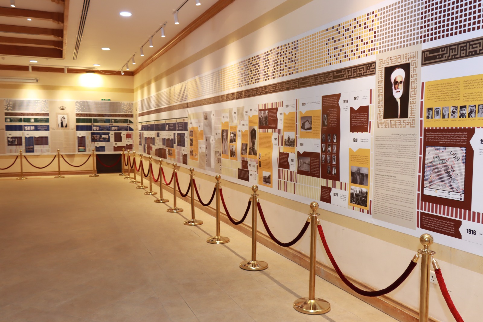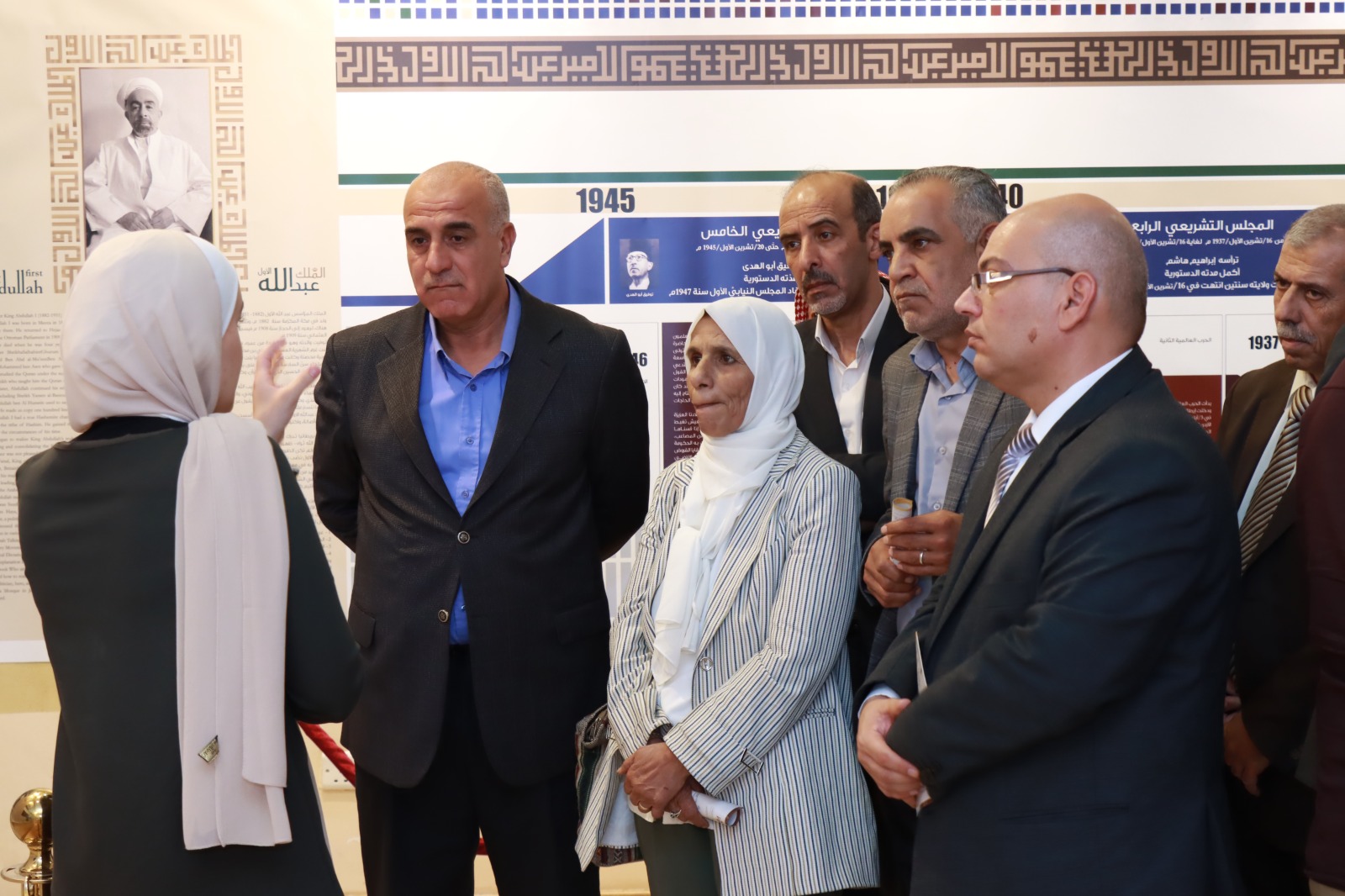 حيث تم عرض شرح لمحتويات المعرض قدمته زينة زكريا تضمن مسيرة المئة عام الأولى من عمر الدولة الأردنية منذ نشأة إمارة شرق الأردن وحتى عام ٢٠٢١م، وبرز فيها اهتمام الهاشميين ومنذ توليهم الحكم بالحياة النيابية الديموقراطية الممثلة لكل أفراد المجتمع الأردني.