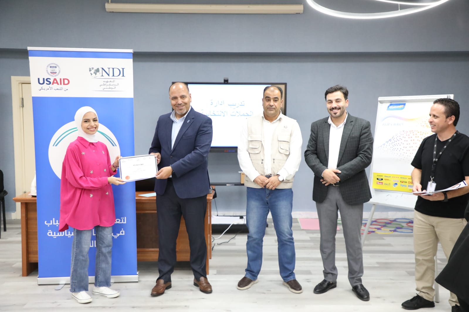 وفي مركز شباب مؤاب اختتم الجبور دورة "إدارة الحملات الانتخابية التي تقام صمن برنامج مكن" التي تقام بالتعاون مع المعهد الديمقراطي الوطني بمشاركة ٢٥ شاباً وشابة.