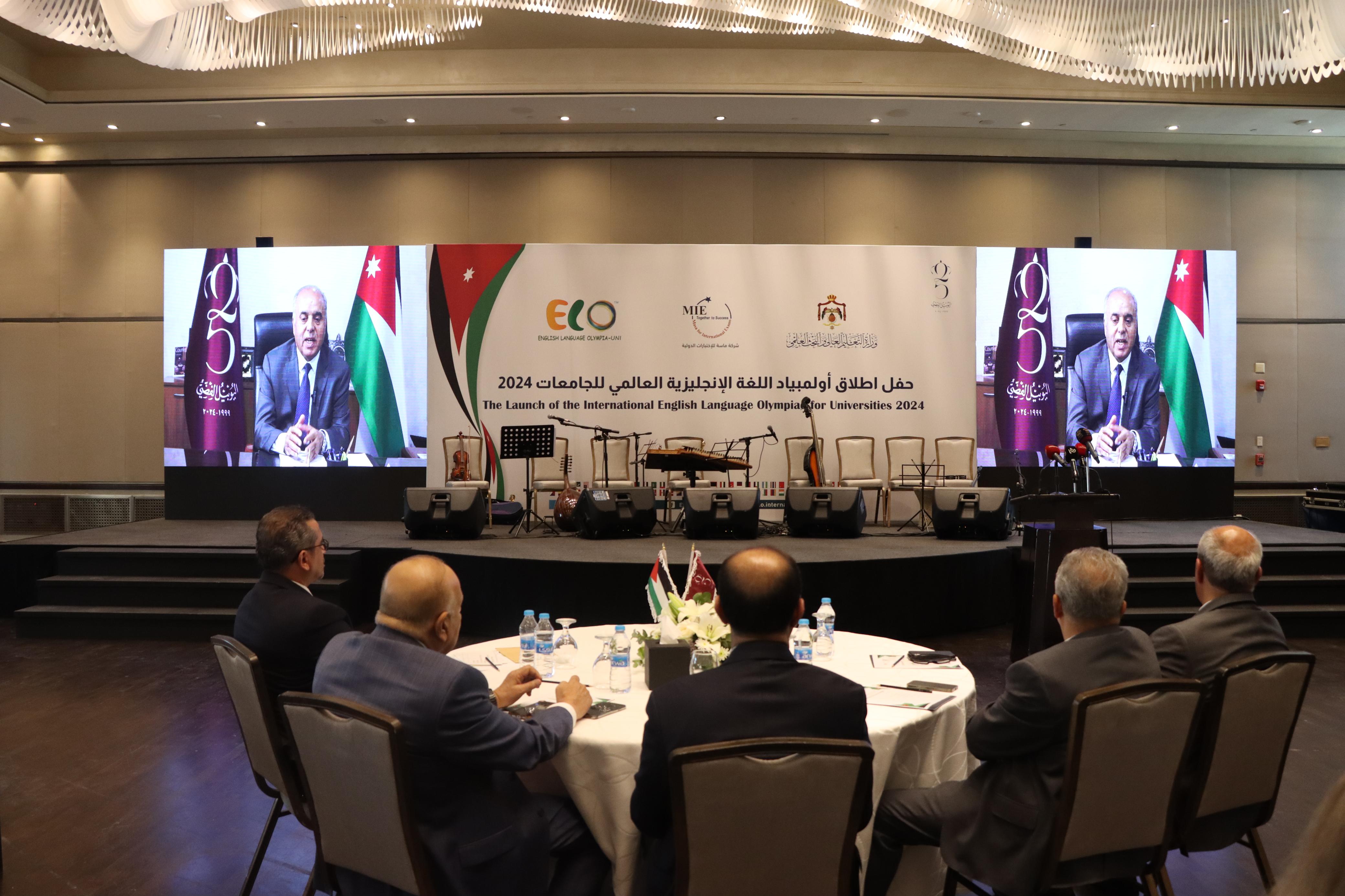 تحت رعاية وزير التعليم العالي والبحث العلمي الدكتور عزمي محافظة أطلقت وزارة التعليم العالي والبحث العلمي وبالتعاون مع شركة ماسة للإختبارات الدولية اليوم الخميس الموافق 18-7-2024 أولمبياد اللغة الإنجليزية العالمي للجامعات 2024، وذلك بحضور أمين عام وزارة التعليم العالي والبحث العلمي الدكتور مأمون الدبعي مندوبا عن راعي الحفل، ومعالي أمين عام اتحاد الجامعات العربية الدكتور عمرو سلامة، وعدد من رؤساء الجامعات الأردنية الرسمية والخاصة، إضافةً إلى عدد من الملحقين والمستشارين الثقافيين العرب في عمان.