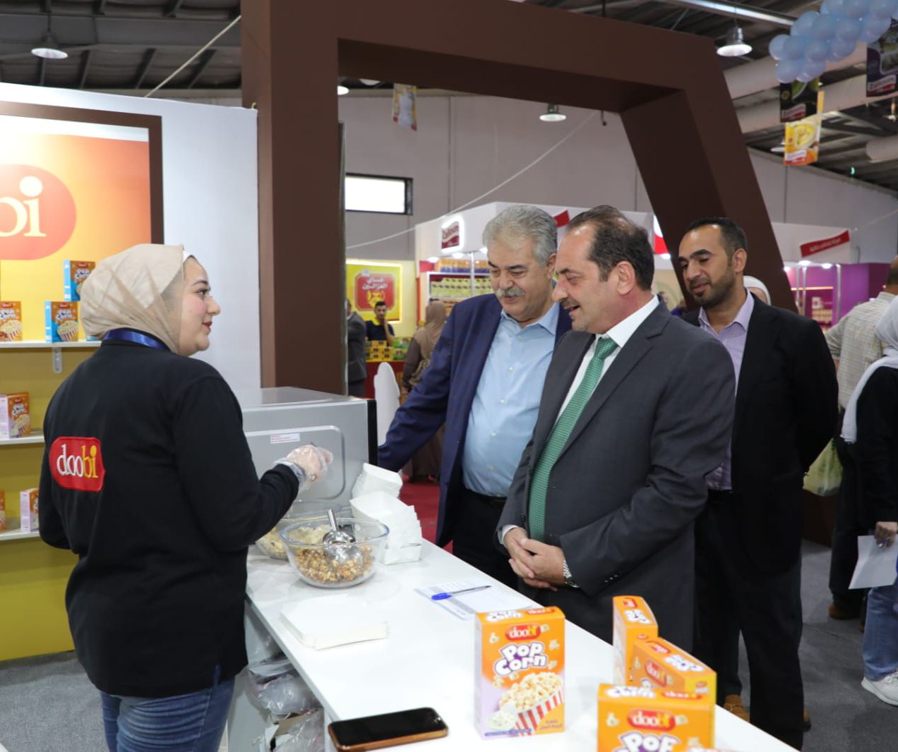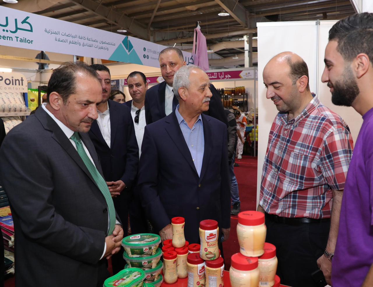 وجال الكايد يرافقه رئيس غرفتي صناعة الأردن وعمان المهندس فتحي الجغبير ورئيس غرفة صناعة اربد هاني ابو حسان في أجنحة الشركات الأردنية المشاركة في المهرجان التي تضم قطاعات تعمل بصناعات محلية ودولية .