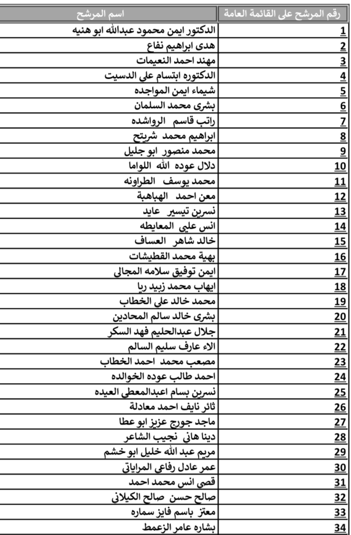 ومن اللافت للانتباه في القائمة أن نصف المترشحين من العشرة الاوائل هن من السيدات.