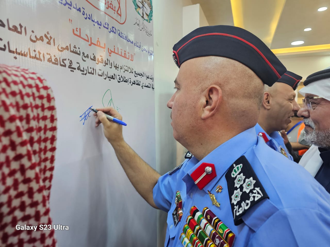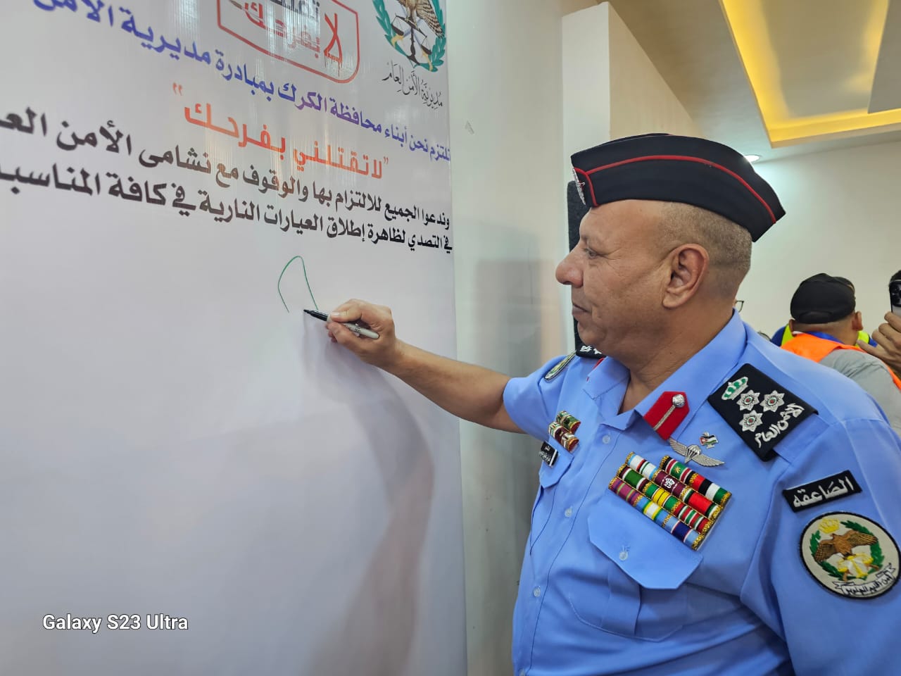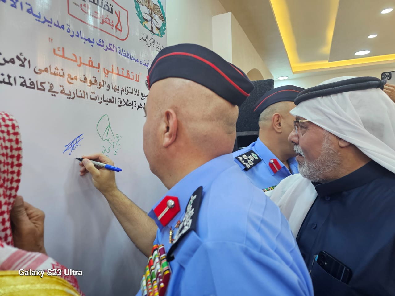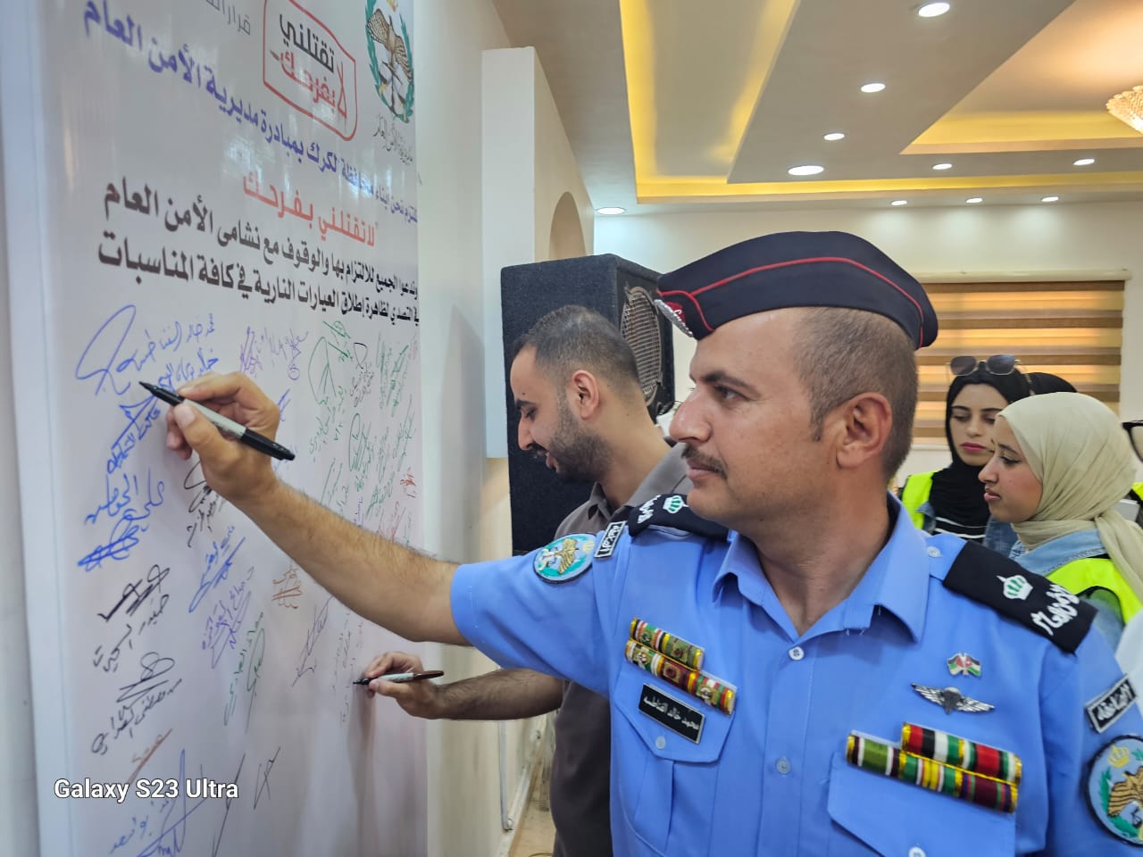 رعي العميد الدكتور فراس الدويري قائد امن إقليم الجنوب مبادرة لاتقتلني بفرحك والتي إقامتها مديرية شباب محافظة الكرك بالتعاون مع مركز شابات الغوير