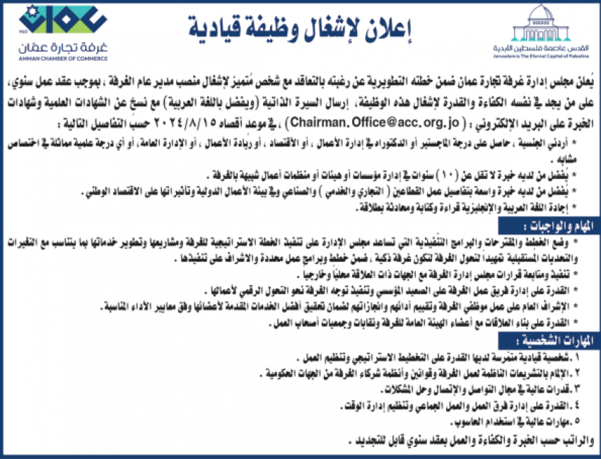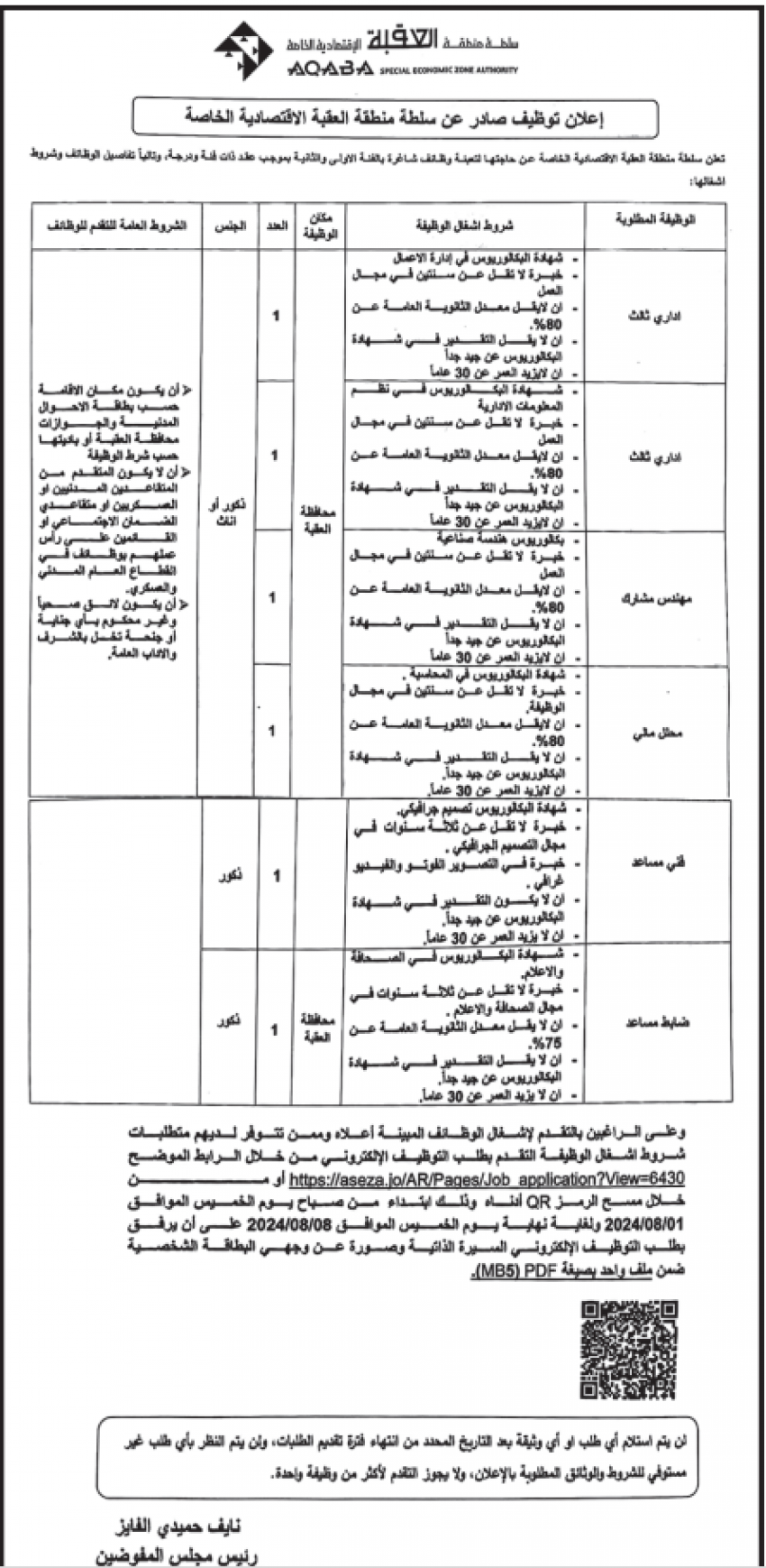 أعلنت وزارة الزراعة وسلطة منطقة العقبة الاقتصادية الخاصة وغرفة تجارة عمان ،اليوم الخميس، عن توفر شواغر وظيفية لديها في تخصصات عدة.