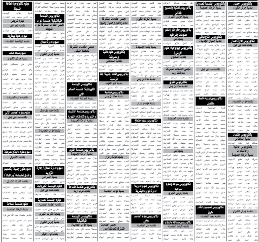 دعت بلديات ومجالس محافظات، بالتنسيق مع إدارة تقييم الكفايات الوظيفية في هيئة الخدمة والإدارة العامة، اليوم الخميس، مجموعة من المرشحين من مختلف التخصصات للتواجد في مبنى الهيئة يوم الأربعاء الموافق 18 أيلول المقبل، لحضور الامتحان التنافسي الإلكتروني. وفيما يلي الأسماء: