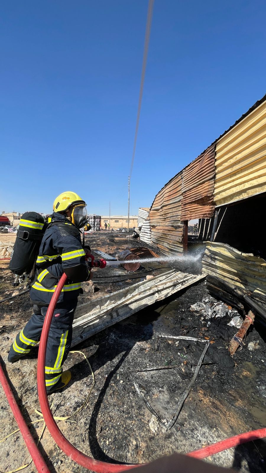 فرق الدفاع المدني تسيطر على حريق مصنع قطنيات في محافظة العاصمة