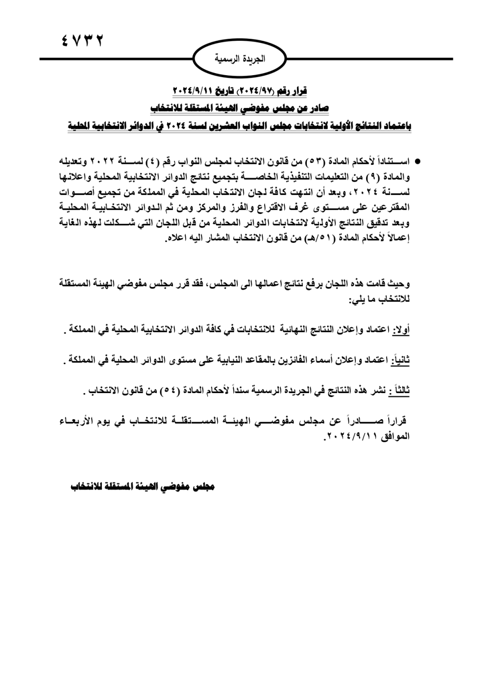 نشرت الجريدة الرسمية في عددها الصادر مساء امس السبت النتائج النهائية للانتخابات النيابية 2024.