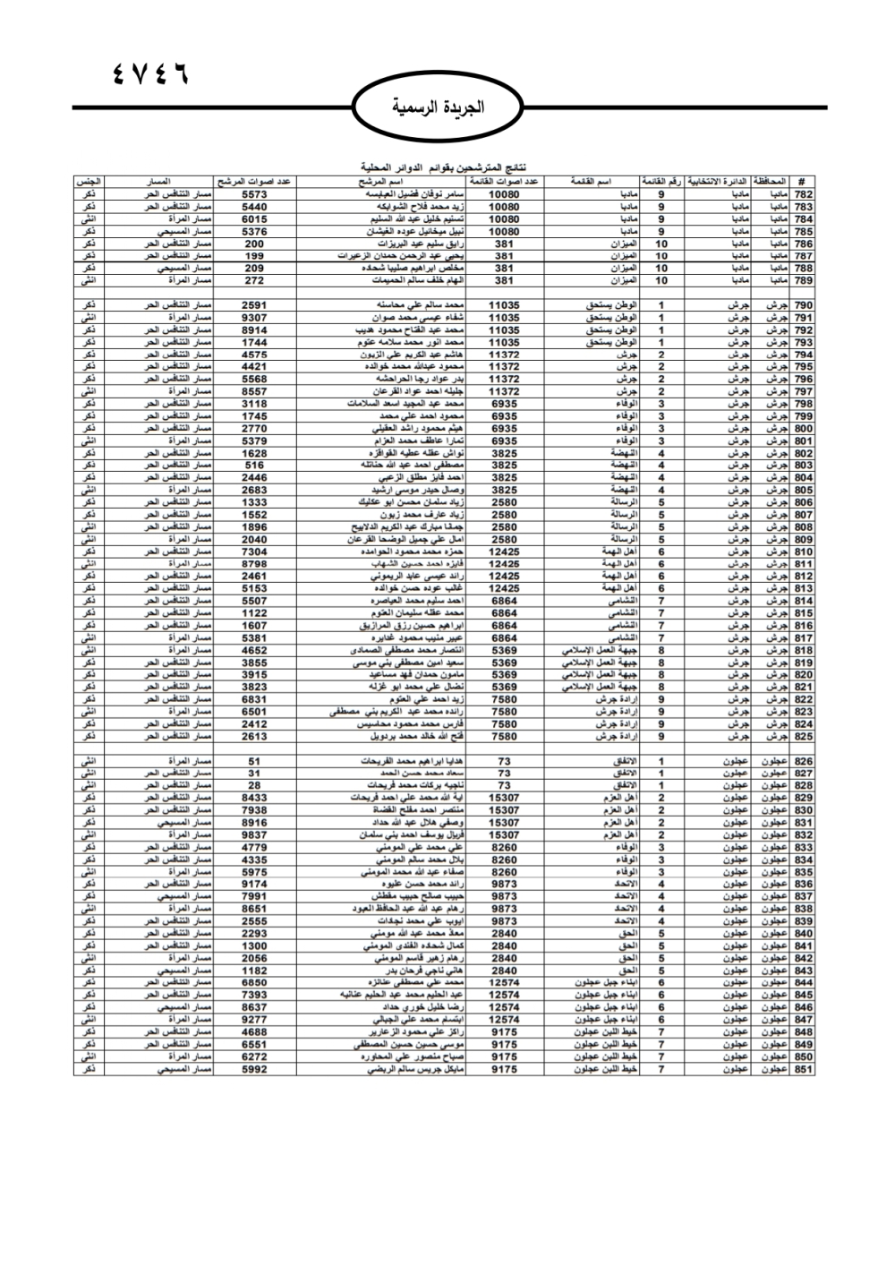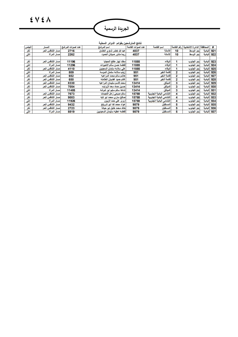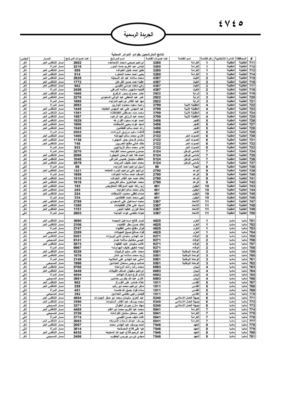 نشر النتائج النهائية للانتخابات في الجريدة الرسمية (أسماء)