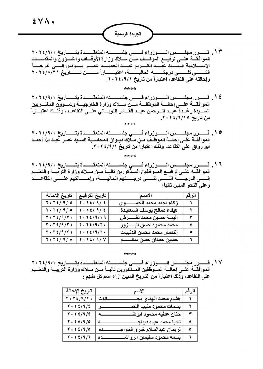 صدر في عدد الجريدة الرسمية، اليوم الأحد، قرارات مجلس الوزراء بإحالة عدد من موظفي الدولة إلى التقاعد، وانهاء خدمات آخرين.